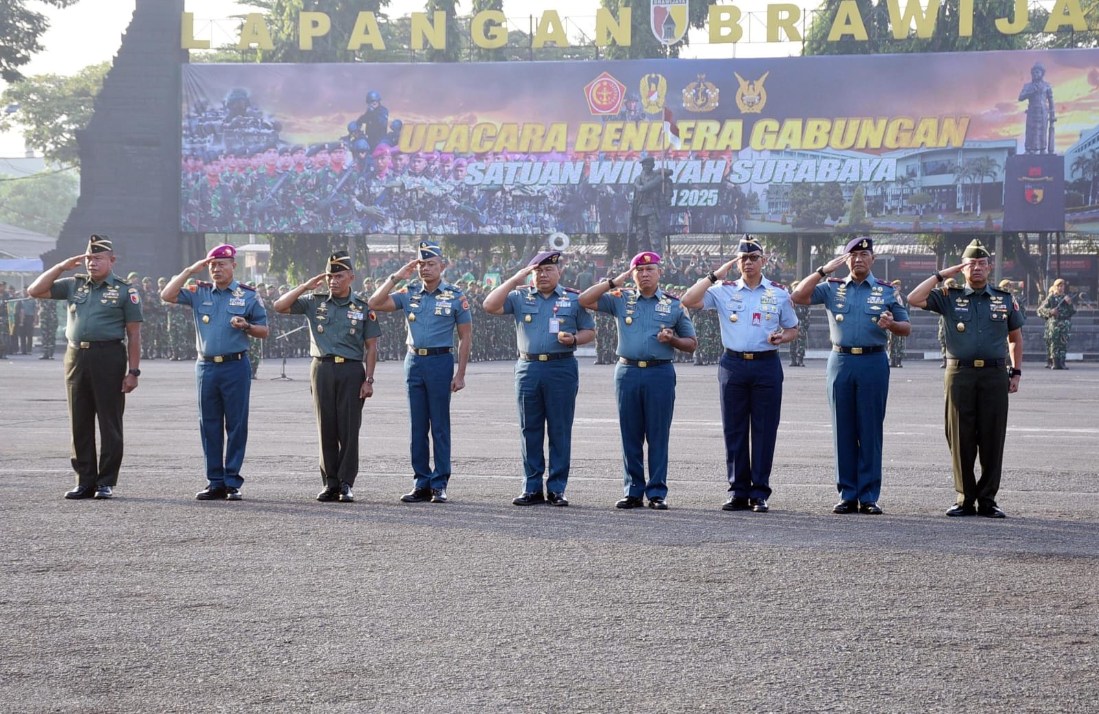 Upacara Bendera gabungan tersebut, di pimpin oleh Pangdam V/Brawijaya, Mayjen TNI Rudy Saladin, M.A. Dalam amanat Kepala Staf Umum (Kasum) TNI Letjen TNI Richard Tampubolon, S.H., M.M., yang di bacakan Pangdam V Brawijaya menyampaikan upacara bendera yang kita laksanakan setiap bulan bukan sekedar kegiatan rutinitas saja, melainkan sebagai momentum untuk memperkuat jiwa nasionalisme, meneguhkan kembali semangat pengabdian kepada bangsa dan negara, serta menjadi saran evaluasi dan introspeksi terhadap pelaksanaan tugas kita sehari-hari sebagai abdi negara.
