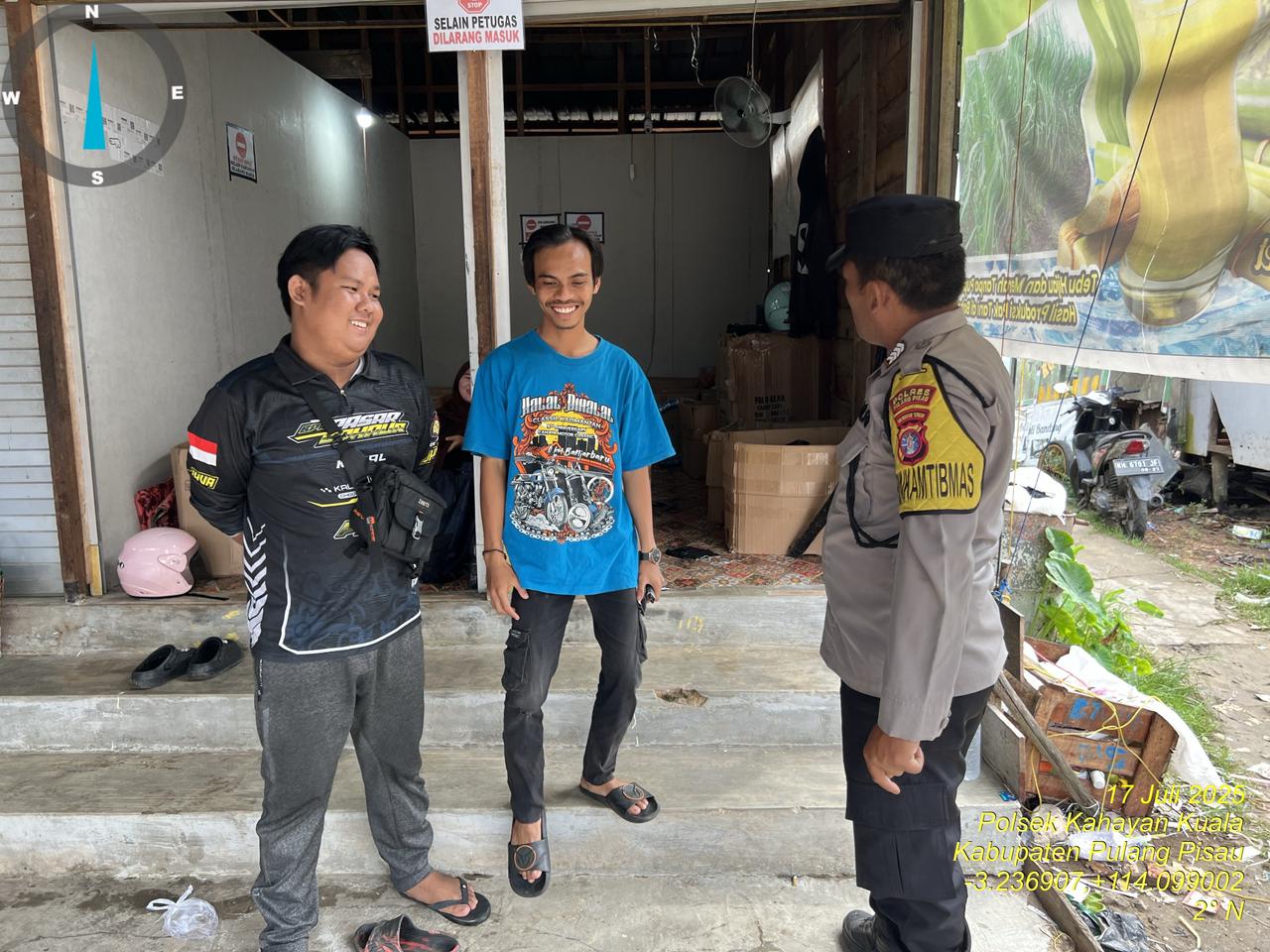 Polres Pulang Pisau – Personil Polsek Kahayan kuala, Polres Pulang Pisau Polda Kalteng, menghimbau agar warga masyarakat dapat membantu Polri dalam hal menjaga Kamtibmas di kecamatan Kahayan kuala Kabupaten Pulang Pisau Provinsi Kalimantan Tengah, Kamis (17/07/2025).