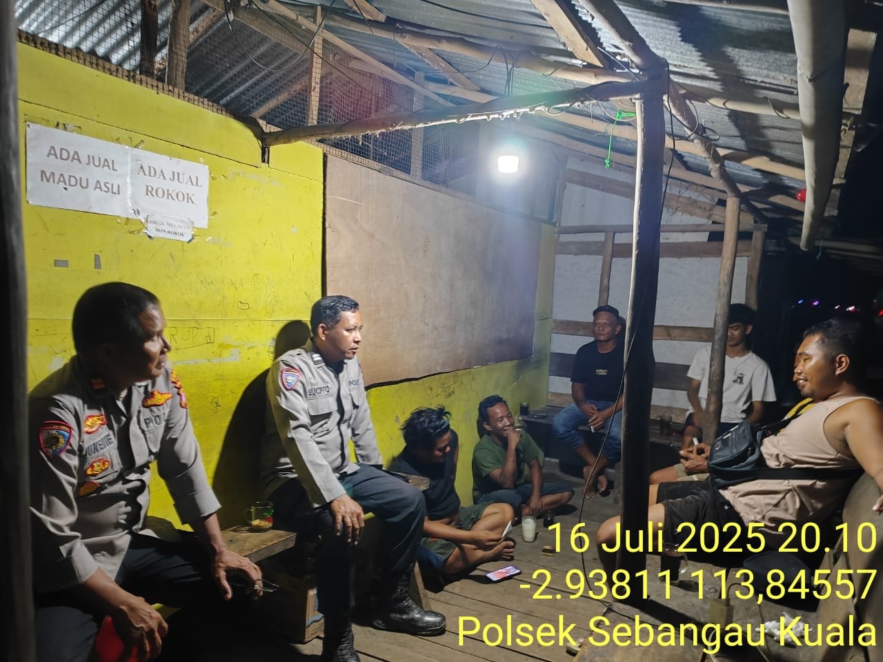 Polsek Sebangau Kuala – Polres Pulang Pisau, Polda Kalteng, memberikan sosialisasi dan imbauan Kamtibmas kepada masyarakat Kecamatan Sebangau Kuala agar turut serta dalam menjaga Kamtibmas agar tetap kondusif, Rabu (16/07/2025) Malam.