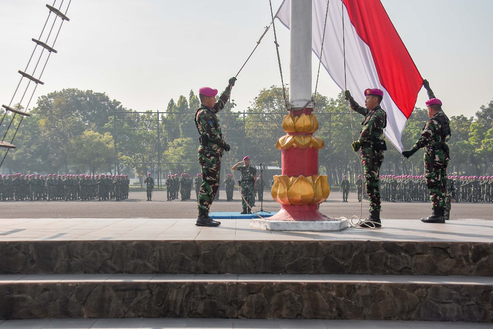 TNI AL, Dispen Kormar (Sidoarjo) PW : Menjaga dan meningkatkan sikap nasionalisme, Prajurit dan Pegawai Negeri Sipil (PNS) Brigade Infanteri 2 Marinir melaksanakan Upacara Bendera 17-an di lapangan apel Kesatrian Marinir R. Suhadi Gedangan, Sidoarjo, Jawa Timur. Kamis (17/07/2025).