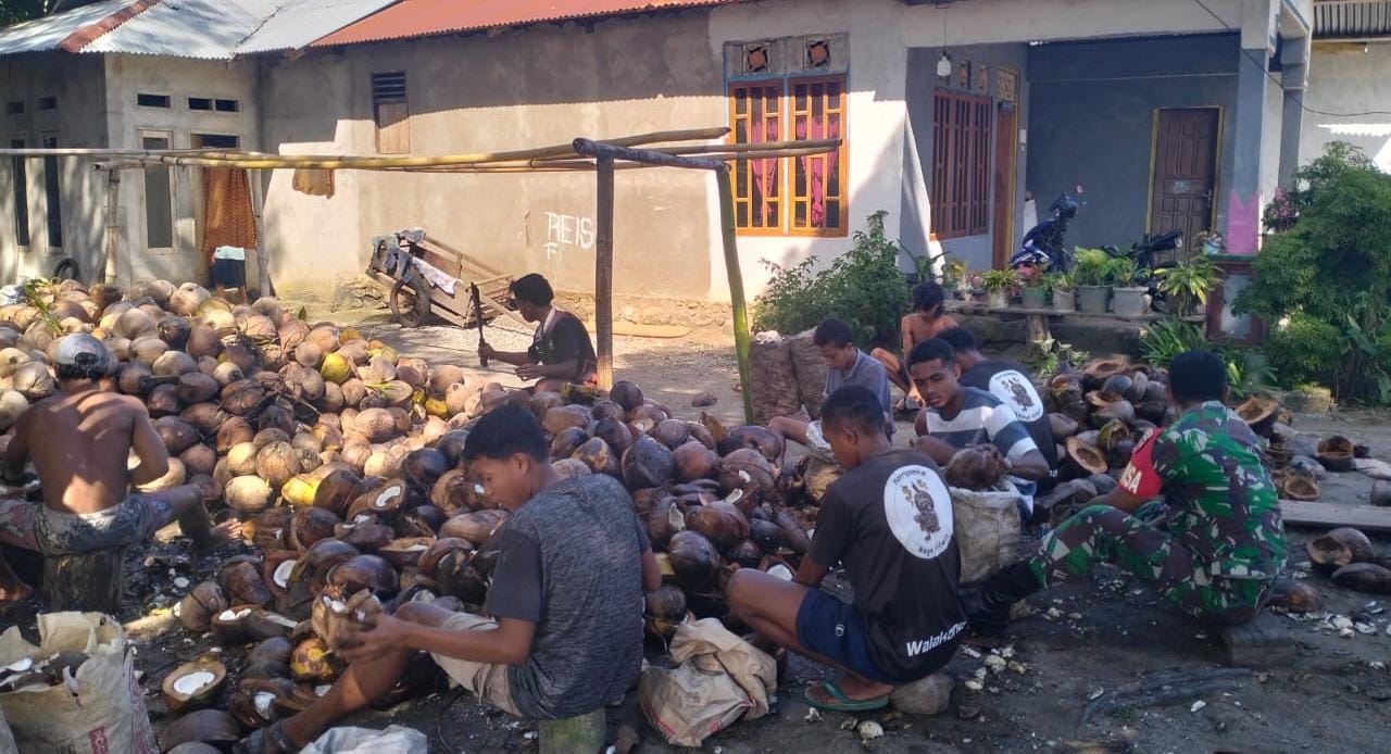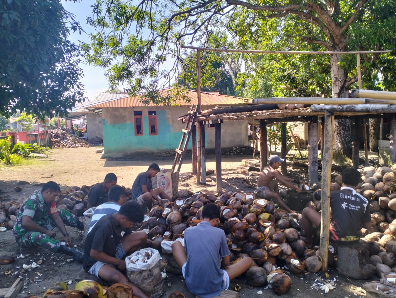 Bapak Mon Silaya menyampaikan rasa terima kasihnya atas bantuan yang diberikan oleh Babinsa dan para pemuda. Ia mengaku sangat terbantu, apalagi pekerjaan membelah kelapa cukup menguras tenaga.