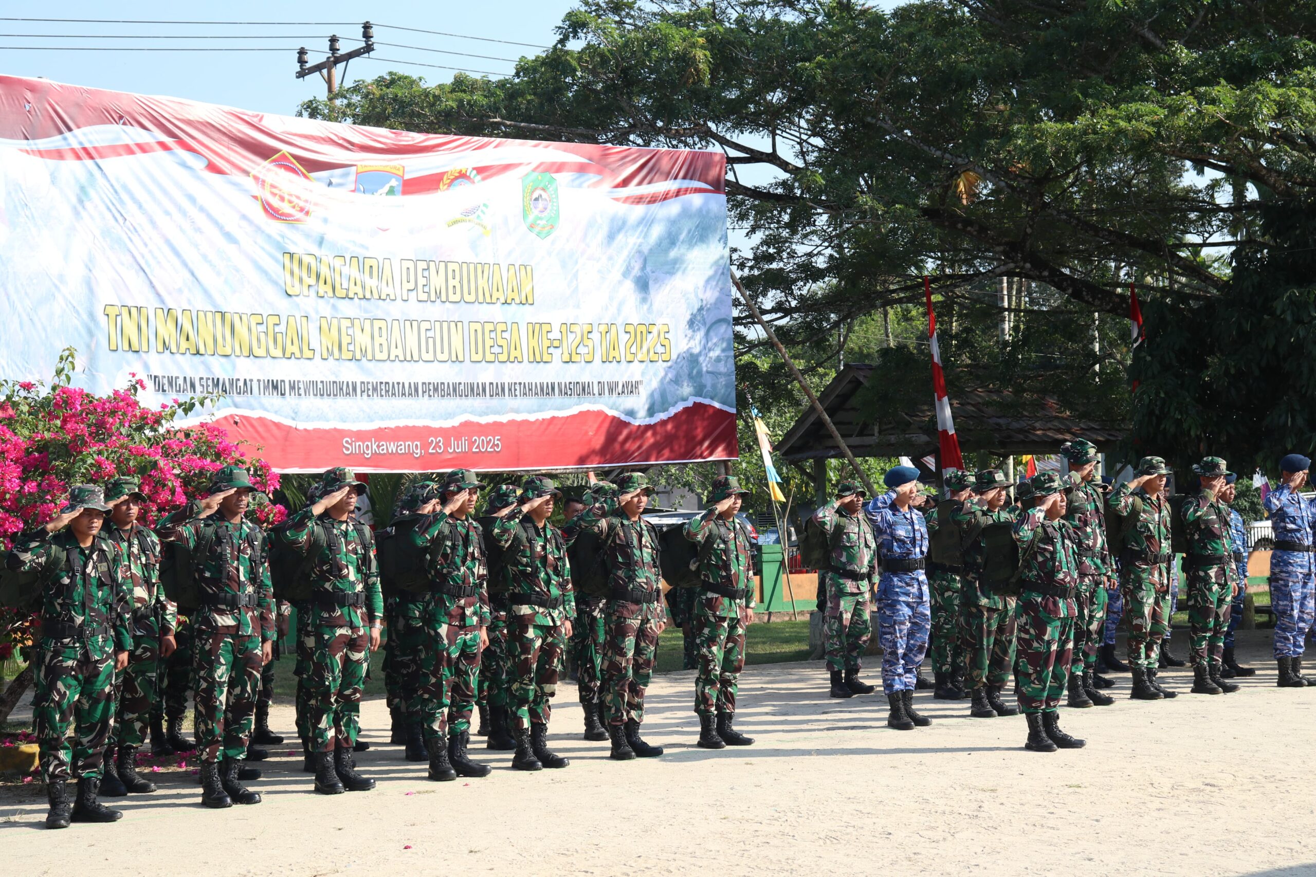 TNI AL, Pasmar 1. Komandan Batalyon Marinir Pertahanan Pangkalan (Danyonmarhanlan) XII Mayor Marinir Saiful Anam, CTMP., mengikuti Upacara pembukaan TNI Manunggal Membangun Desa (TMMD) ke-125 TA 2025 di Halaman SDN 64 Singkawang, Jl. Gambir, Kel. Mayasopa, Kec. Singkawang Timur, Kota Singkawang, Kalimantan Barat. Rabu (23/07/2024).