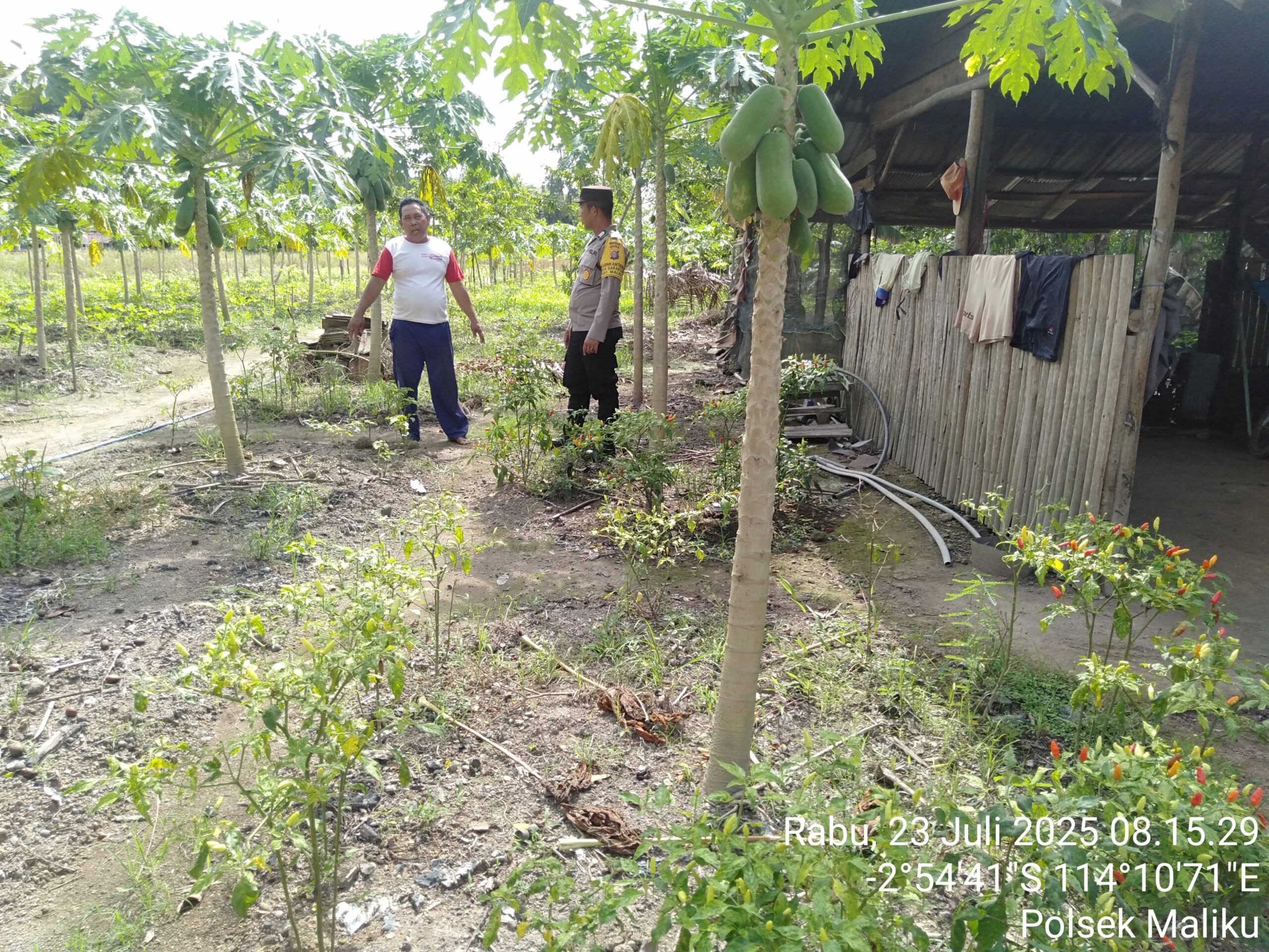 Polres Pulang Pisau – Polisi Penggerak Ketahanan Pangan Desa Garantung, Polsek Maliku, Polres Pulang Pisau, Polda Kalteng, Brigpol I Putu Tirta P., melaksanakan melaksanakan kegiatan Sosialisasi kepada warga masyarakat perihal pemanfaatan pekarangan bergizi dalam rangka menjalankan Kegiatan Program 1 (Pekarangan Pangan Bergizi) Ketahanan Pangan, Rabu (23/07/2025) Pagi.