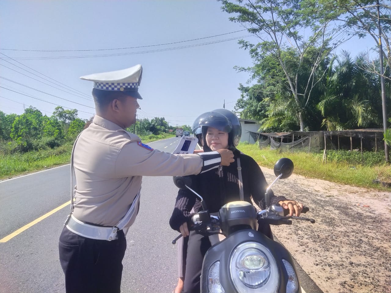 Polres Pulang Pisau – Satuan Lalu Lintas – Dengan Senyuman yang ramah Personel Satlantas Polres Pulang Pisau mengingatkan pengendara roda dua agar selalu klik helm saat berkendara. Rabu (30/7/2025). Pukul 07.30 WIB Imbauan itu disampaikan demi mewujudkan keamanan, keselamatan, ketertiban dan kelancaran lalu lintas (Kamseltibcarlantas). Kapolres Pulang Pisau AKBP Iqbal Sengaji, S.I.K., M.Si melalui Kasatlantas Iptu Divani Mareta Astuti, S.Tr.K, mengatakan pengendara yang tidak meng-klik helm diberikan teguran oleh personel Satlantas. “Sosialisasi dan edukasi ini sebagai upaya untuk mengedukasi pengguna jalan agar mematuhi aturan berlalu lintas,” kata Kasat.