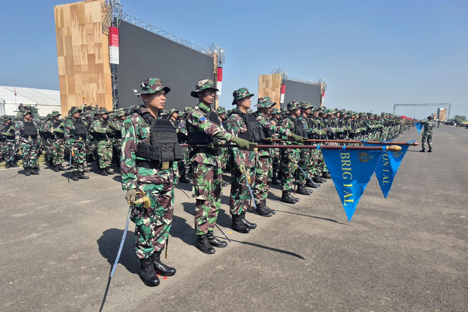 Dispen Kormar, TNI AL (Bandung) PW : Komandan Brigade Infanteri 2 Marinir Kolonel Marinir Daniel Tarigan selaku Komandan Brigade Infanteri Marinir melaksanakan gladi gelar upacara Pasukan Operasional dan Kehormatan Militer di Lapangan Terbang Pusat Pendidikan dan Latihan Pasukan Khusus (Pusdiklatpassus) Komando Pasukan Khusus (Kopassus), Batujajar, Bandung, Jawa Barat, Jumat (01/08/2025). Kegiatan tersebut selain untuk mempersiapkan prajurit menghadapi Upacara Kehormatan Militer di Batujajar, juga merupakan bagian dari pembinaan tradisi dan pembentukan karakter keprajuritan, serta untuk menumbuhkan sikap disiplin dan semangat korps di kalangan prajurit Marinir. Kolonel Marinir Daniel Tarigan menyampaikan bahwa…