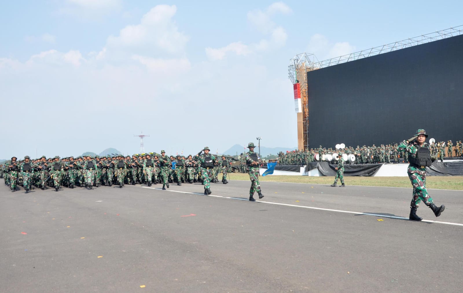 Dispen Kormar, TNI AL (Bandung) PW : Teriknya matahari tak menyurutkan semangat para prajurit petarung Pasmar 2 dalam melaksanakan latihan upacara kehormatan militer yang berlangsung di Lapangan Terbang Pusat Pendidikan dan Latihan Pasukan Khusus (Pusdiklatpassus) Komando Pasukan Khusus (Kopassus), Batujajar, Bandung, Jawa Barat, Jumat (01/08/2025).