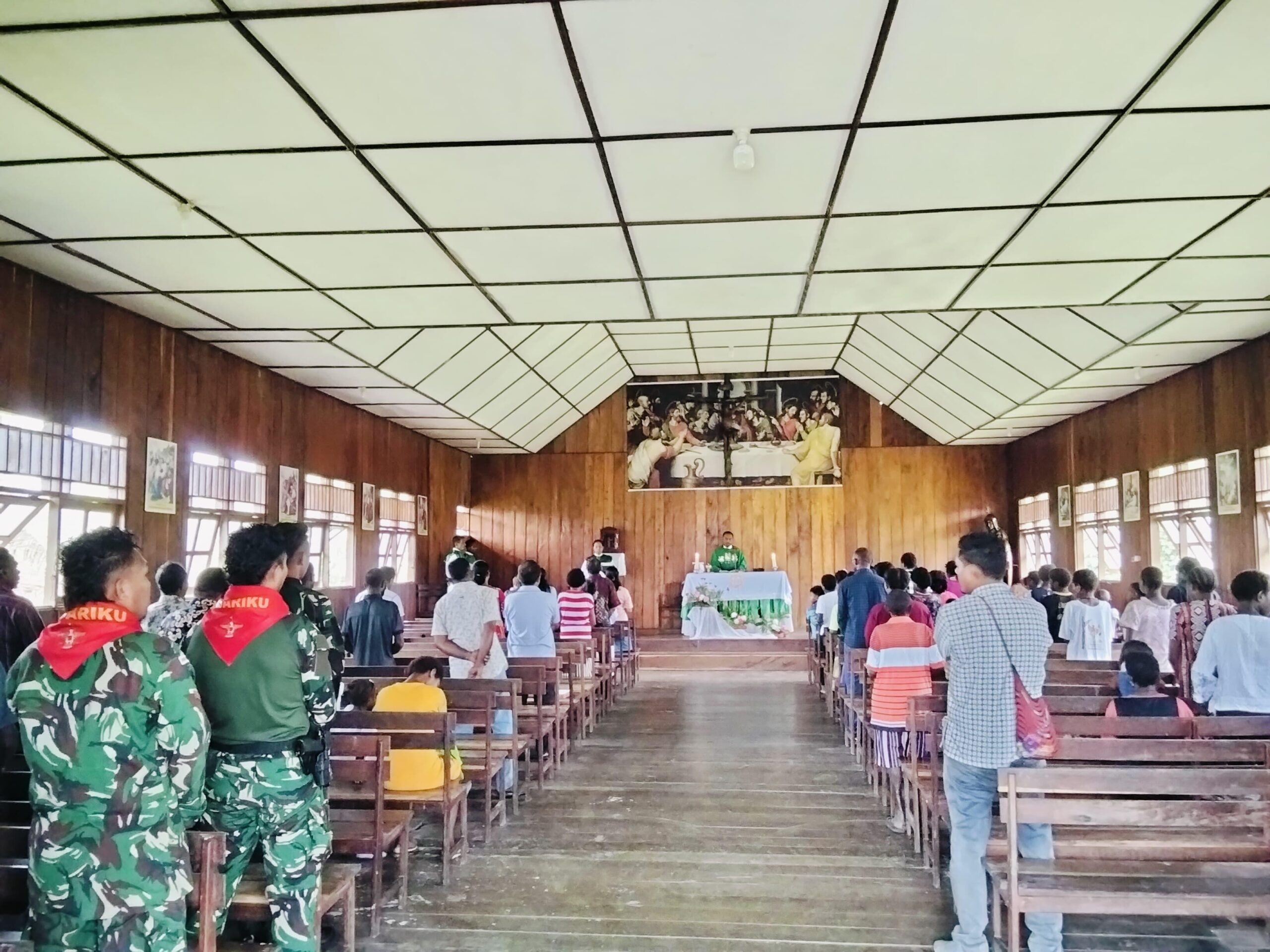 Suasana penuh keakraban dan kekeluargaan tampak selama pelaksanaan ibadah, yang menjadi momen penting dalam memperkuat nilai-nilai toleransi, kebersamaan, dan semangat persaudaraan antara TNI dan masyarakat perbatasan.