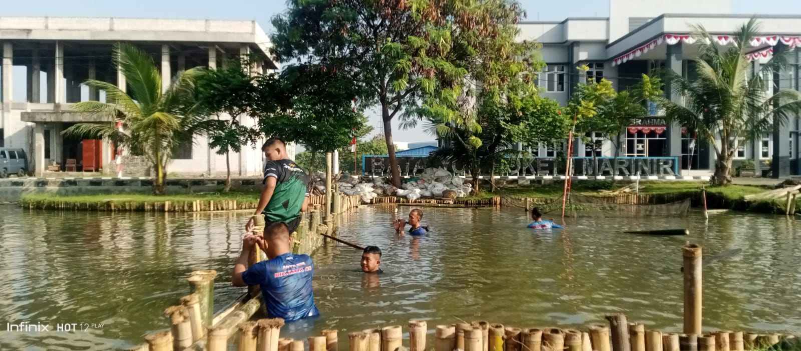 TNI AL, Pasmar 1. Dalam rangka mendukung program ketahanan pangan, Prajurit Resimen Artileri 1 Marinir (Menart 1 Mar) melaksanakan pemeliharaan dan perawatan ketahanan pangan di kolam ikan Kesatrian Marinir Baroto Sardadi, Marunda, Cilincing, Jakarta Utara. Sabtu (09/08/2025).