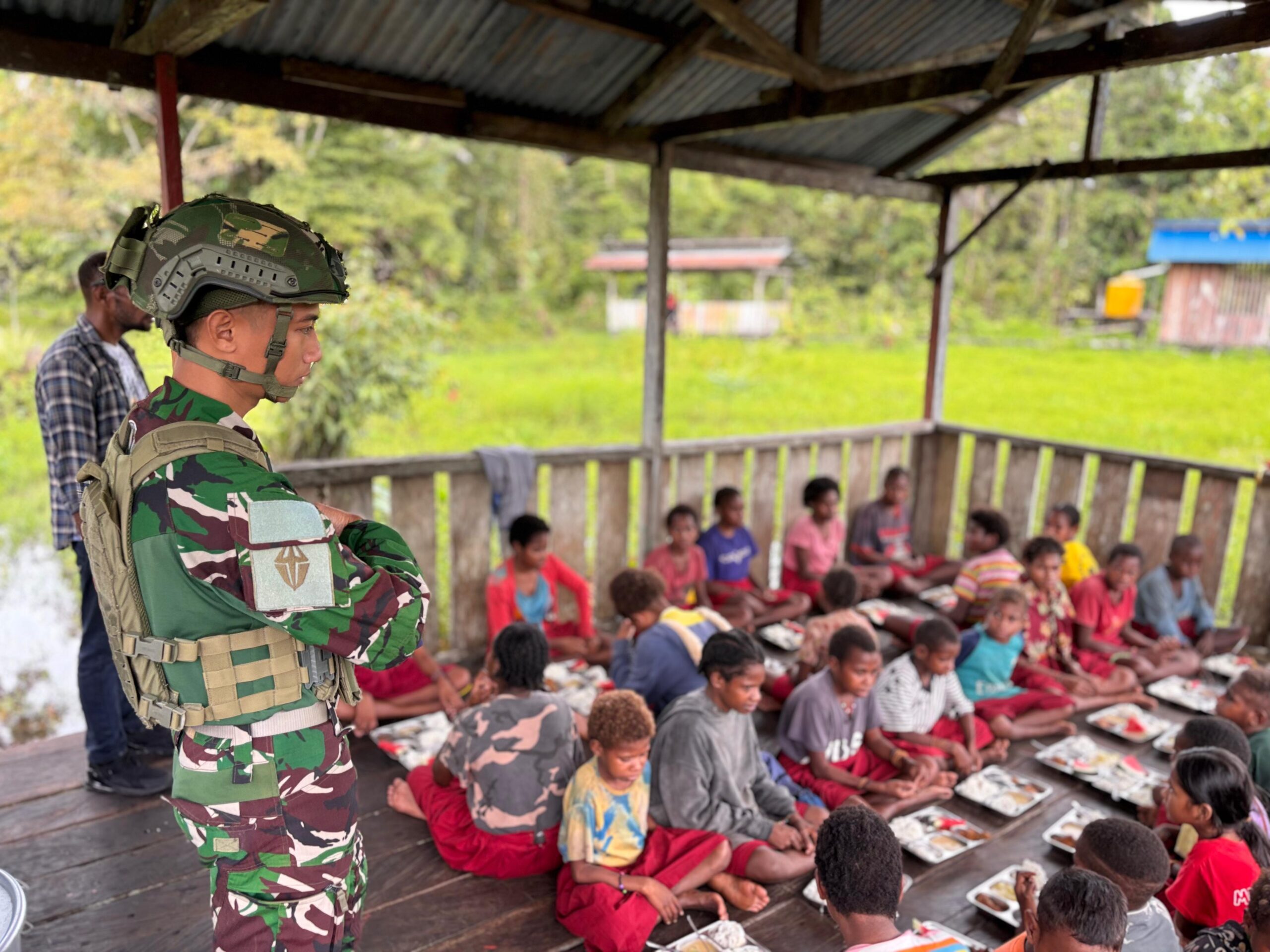 Selain memberikan makanan berlimpah, tim kesehatan dari Satgas juga memberikan edukasi kepada para siswa dan guru tentang pentingnya gizi seimbang.