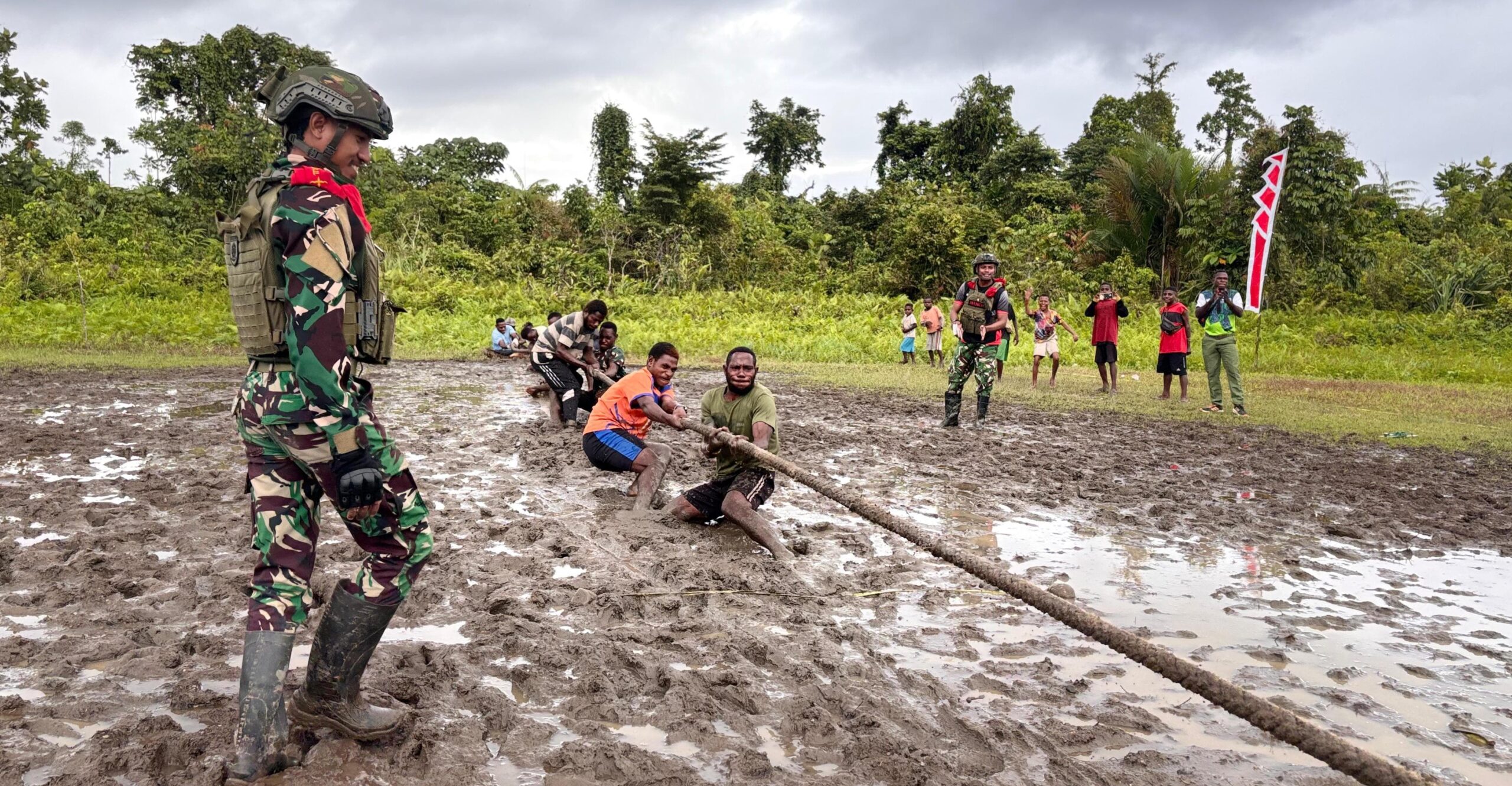 Papua PW 16 Agustus 2025 – Merah putih berkibar lebih tinggi, semangat kemerdekaan terasa lebih membara di Kampung Mumugu, Distrik Krepkuri, Kabupaten Nduga, Papua. Dalam rangka menyambut Hari Ulang Tahun Republik Indonesia (HUT RI) ke-80 yang istimewa pada 17 Agustus 2025, prajurit Satgas Pamtas Mobile Yonif 733/Masariku menggelar lomba tarik tambang yang melibatkan seluruh masyarakat Kampung Mumugu dalam euforia perayaan. Acara ini bukan hanya sekadar perlombaan, tetapi juga simbol eratnya persaudaraan antara TNI dan rakyat, serta wujud nyata semangat gotong royong dalam membangun bangsa. Lomba tarik tambang ini dilaksanakan…