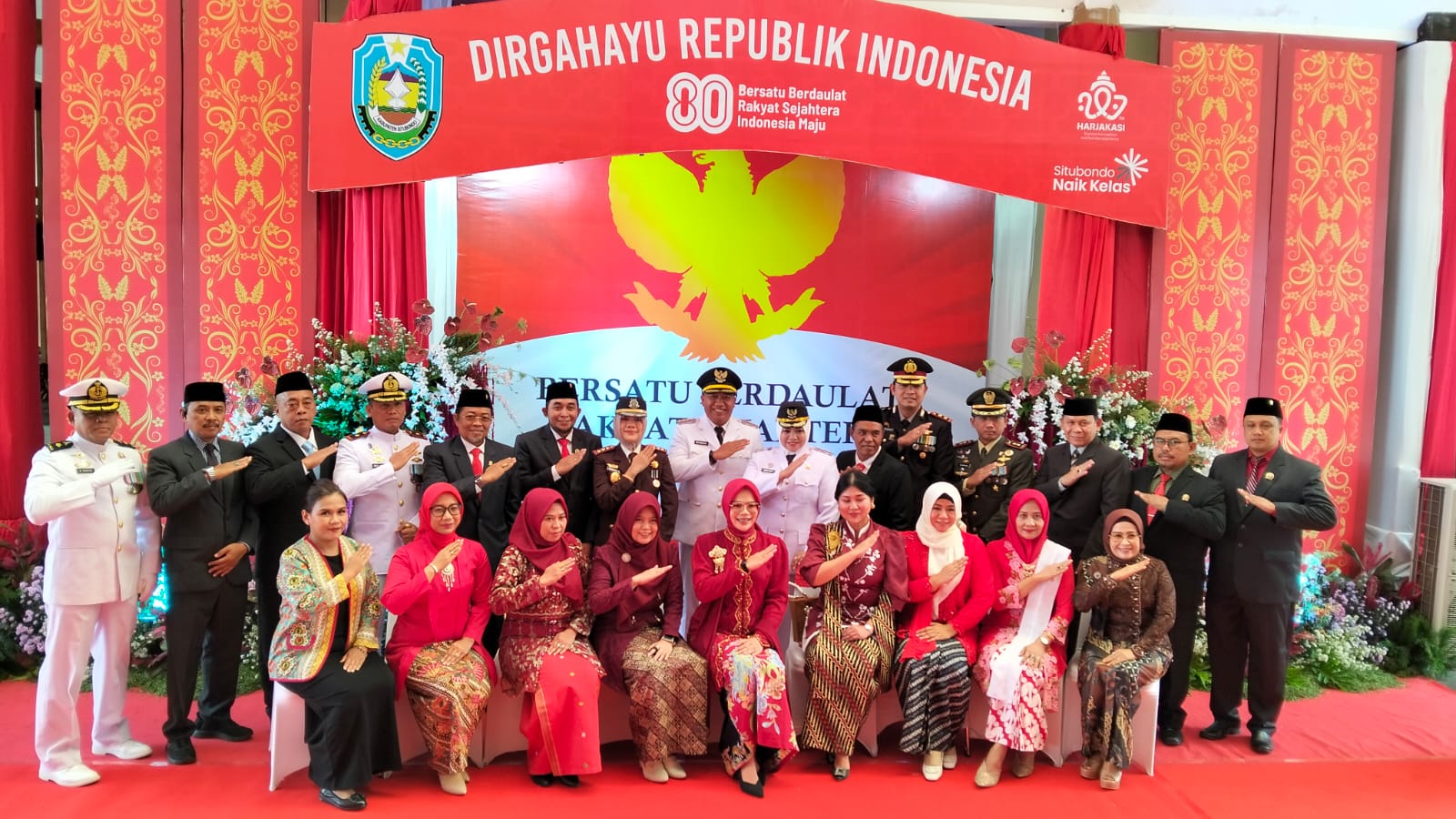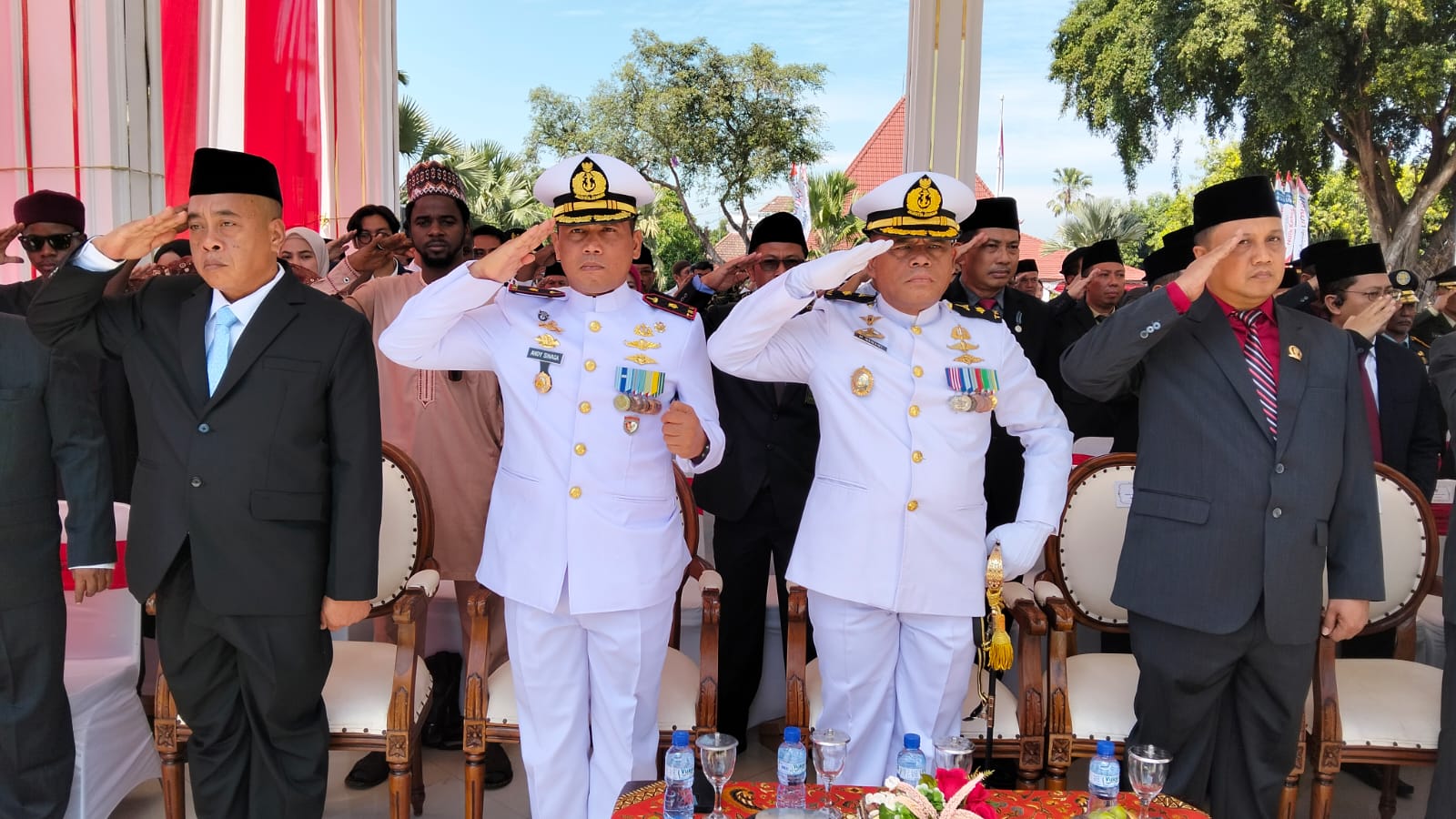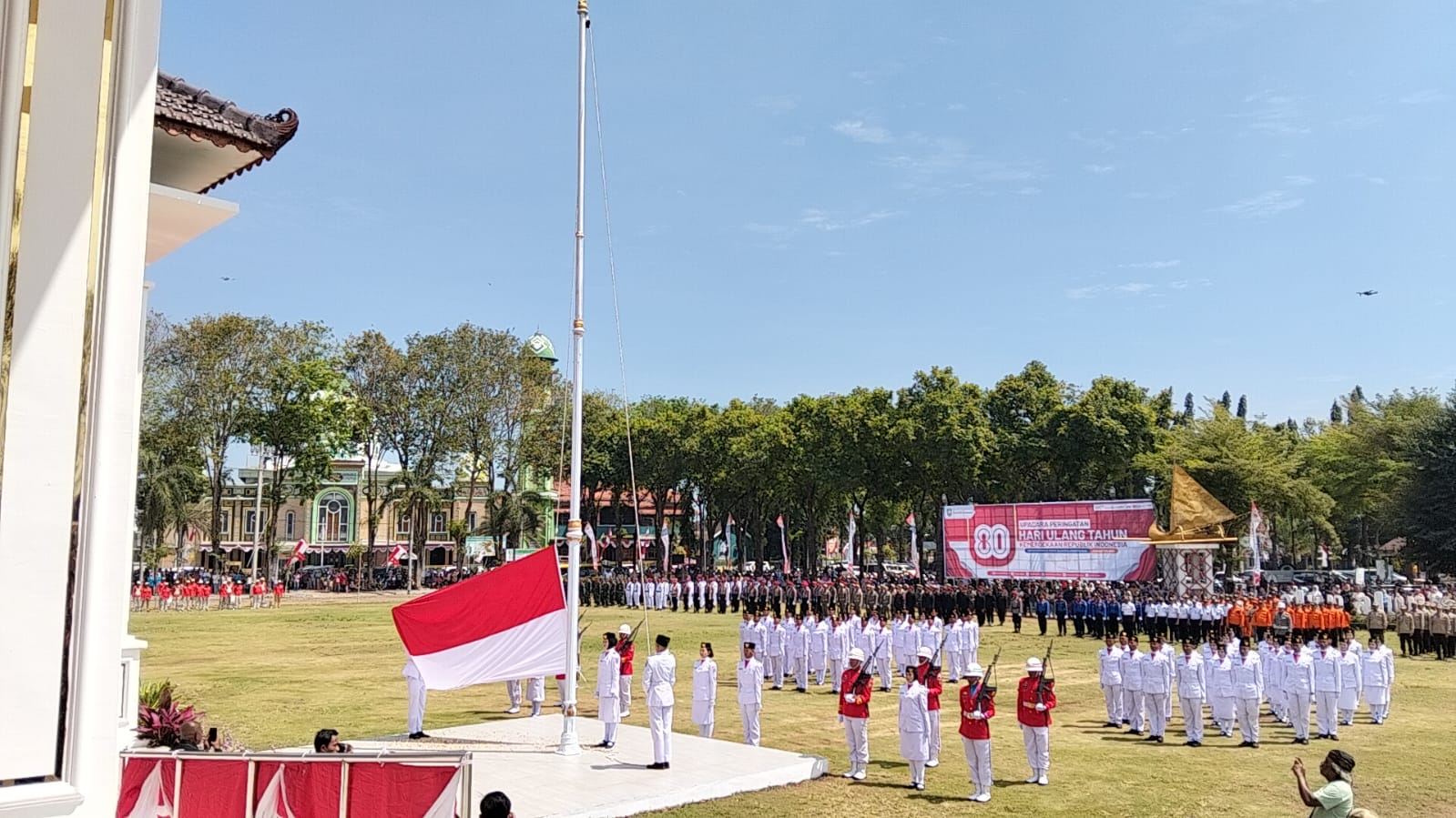Pengibaran bendera merah putih merupakan puncak dari peringatan HUT RI Ke 80 dengan mengusung tema ” Bersatu, Berdaulat, Rakyat Sejahtera, Indonesia Maju” tersebut diikuti oleh seluruh perwakilan TNI, Polri, Instansi Pemerintah, serta tokoh agama, masyarakat, dan perwakilan anak sekolah berlangsung dengan khidmat, sukses dan lancar.