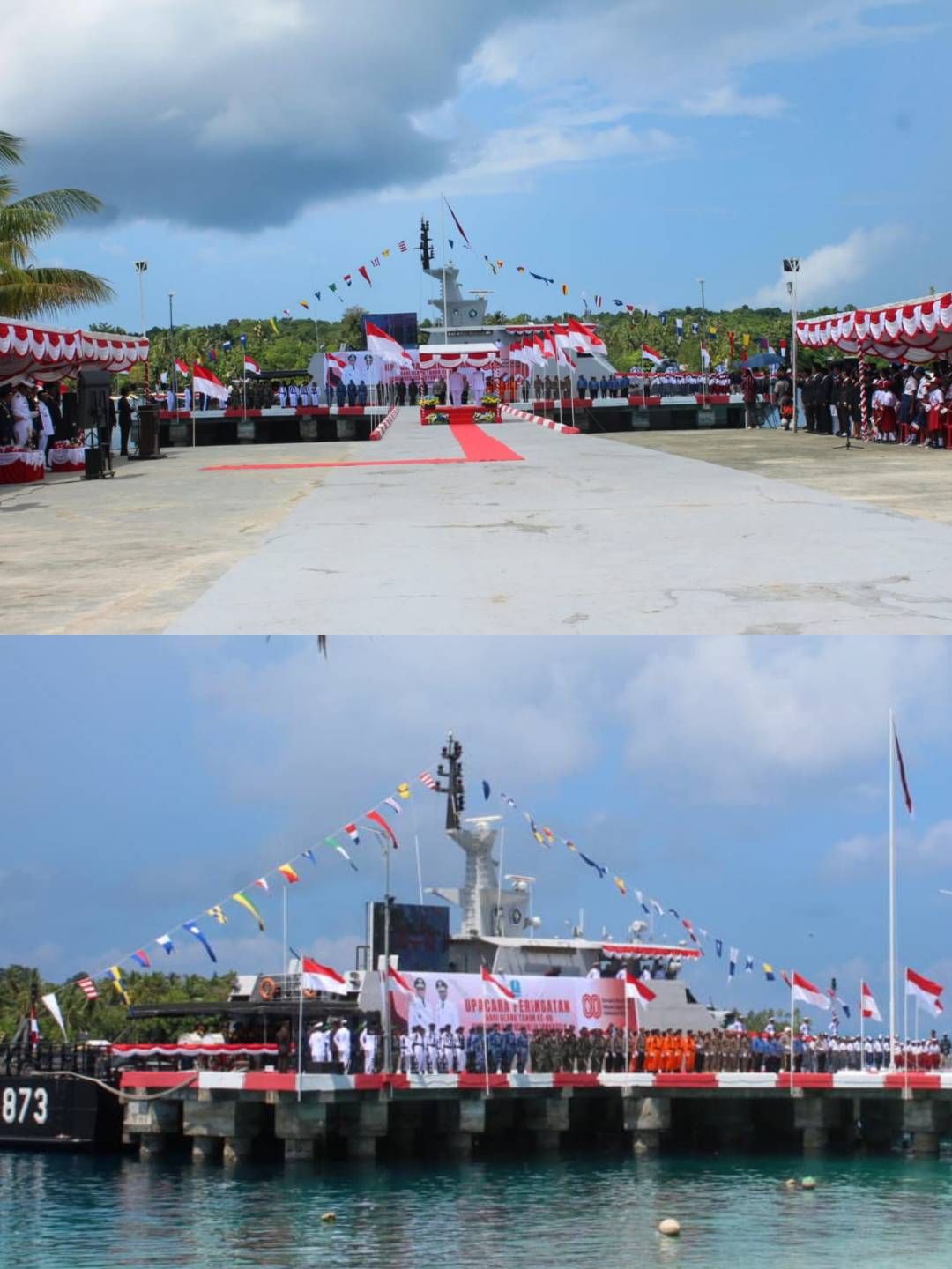 Biak Numfor PW- KRI Matabongsang-873 unsur Bawah Kendali Operasi (BKO) Guskamla Koarmada III, turut serta mendukung pelaksanaan Upacara Hari Ulang Tahun (HUT) ke-80 Kemerdekaan Republik Indonesia di Dermaga Mbromsi, Distrik Aimando Padaido, Kabupaten Biak Numfor, Minggu (17/8/2025).