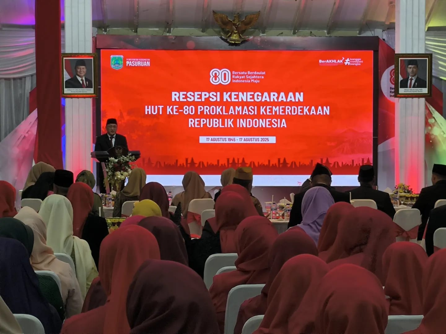 Hadir dalam kegiatan tersebut Bupati Pasuruan H.M. Rusdi Sutejo, Wakil Bupati Pasuruan H.M. Shohbi Asrori, jajaran Forum Koordinasi Pimpinan Daerah (Forkopimda) Kabupaten Pasuruan, TNI-Polri, pasukan paskibra, organisasi kepemudaan, serta para tamu undangan.