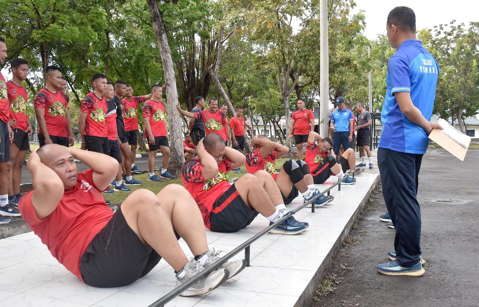 Sebelum pelaksanaan uji kesamaptaan terlebih dahulu dilakukan cek tekanan darah oleh Bintara Kesehatan untuk melihat kondisi fisik dan kesehatan personel dan dilanjutkan dengan melaksanakan pemanasan.