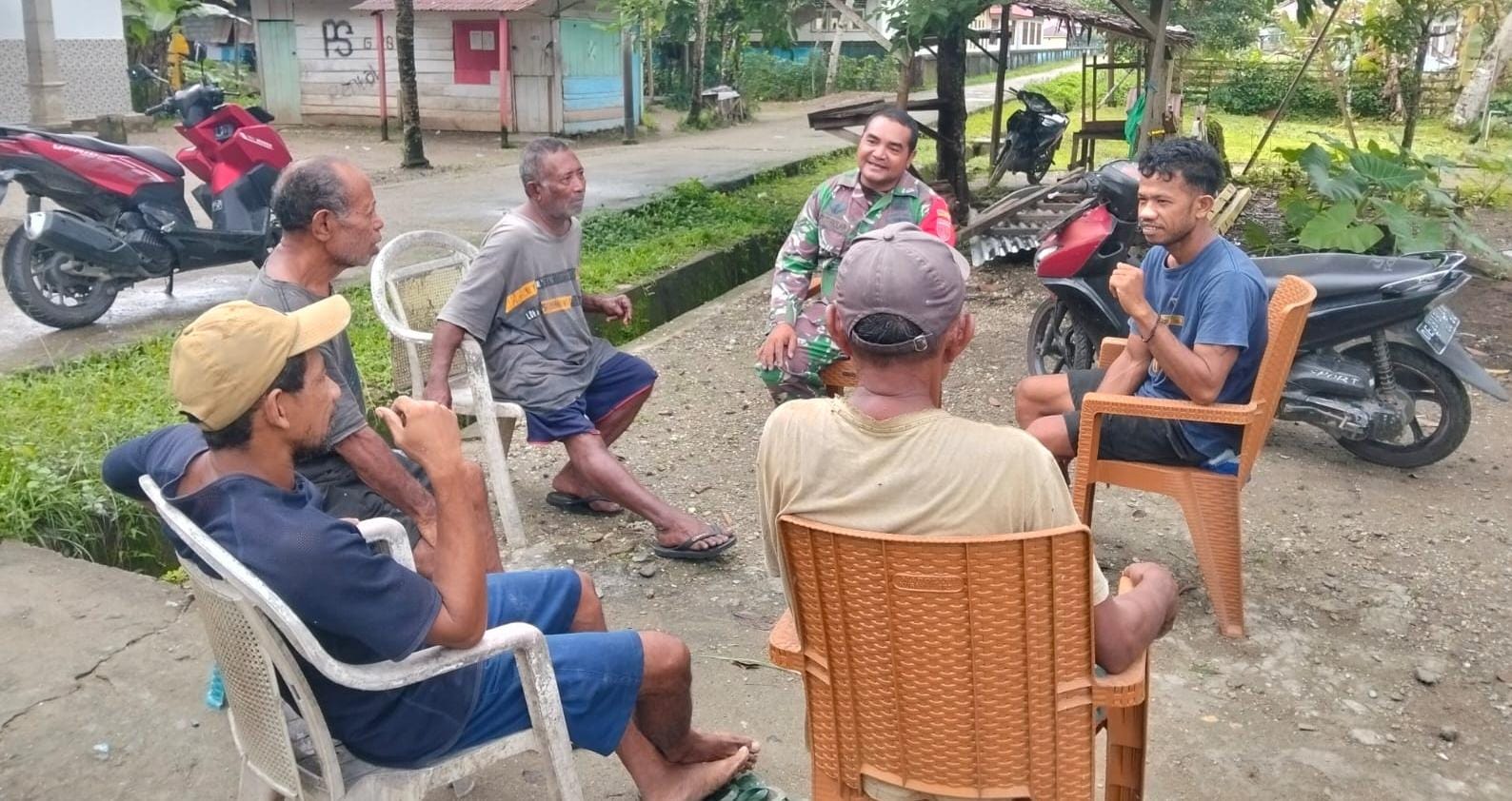 Babinsa 1513-03/Kairatu Desa Kamarian Laksanakan Komsos Bersama Warga, Ingatkan Waspada Aktivitas di Tengah Cuaca Tidak Menentu
