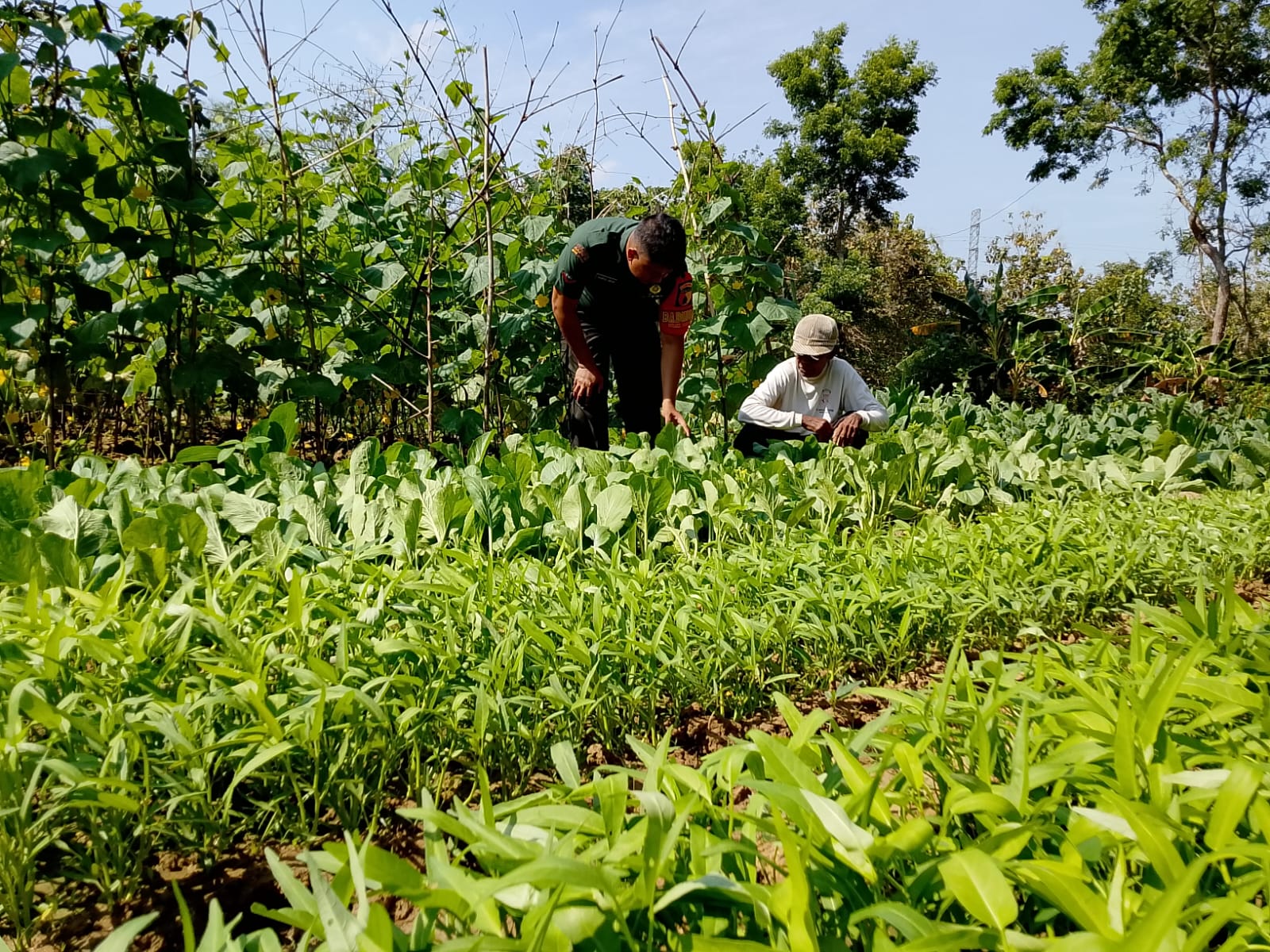 Dalam kesempatan tersebut, Kopda Hairul Umam tidak hanya berdialog, tetapi juga ikut membantu Samsul Karim dalam merawat tanaman sayuran seperti sawi, kangkung, timun, dan kacang panjang.