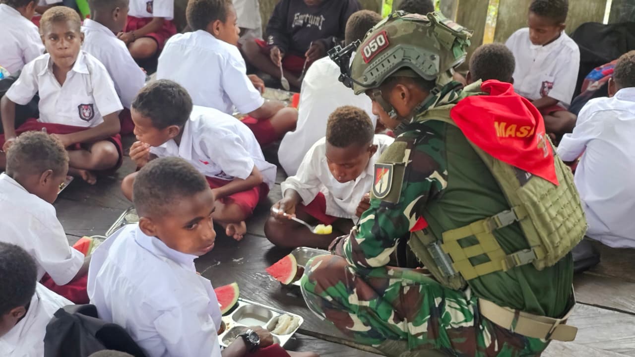 Papua, PW 26 Agustus 2025 – Satuan Tugas Pengamanan Perbatasan (Satgas Pamtas) Mobile Yonif 733/Masariku menunjukkan komitmen nyata dalam mengatasi masalah gizi buruk di Papua. Melalui program “Masariku Peduli Gizi,” mereka aktif memberikan bantuan dan edukasi kepada siswa-siswi di wSD Rimba YPPK Yan Smith St Aloysius Mumugu 2, Distrik Sawa Erma, Kabupaten Asmat, Papua Selatan. Komandan Satgas Pamtas Mobile Yonif 733/Masariku, Letkol Inf Julius Jongen Matakena, menyatakan bahwa program ini merupakan wujud kepedulian TNI terhadap kesehatan dan kesejahteraan masyarakat Papua, khususnya anak-anak yang rentan terhadap gizi buruk. “Kami melihat…