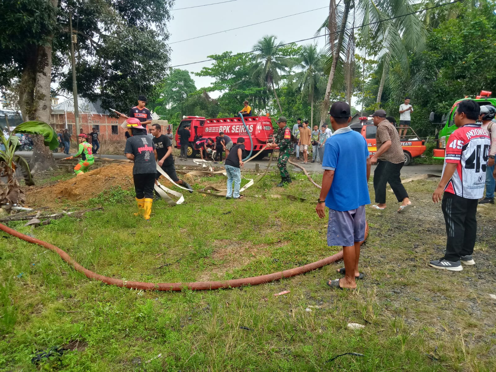 BARABAI – PW;Personel Koramil 1002-04/Labuan Amas Selatan dipimpin Plh. Danramil Pelda Adie Riyanto bersama anggota turut membantu memadamkan kebakaran yang melanda dua unit rumah warga di Desa Pantai Hambawang Timur, RT 02 RW 01, Kecamatan Labuan Amas Selatan, Kabupaten Hulu Sungai Tengah (HST), Selasa (26/8/2025) sekitar pukul 10.43 Wita. Menurut keterangan Pelda Adie Riyanto, berdasarkan informasi dari Pusdalops BPBD HST, api dengan cepat membesar dan meludeskan bangunan rumah kayu milik warga. Rumah yang terdampak adalah milik Irmayani (1 KK, 1 jiwa) dengan kondisi terbakar 100 persen beserta dokumen penting, serta…