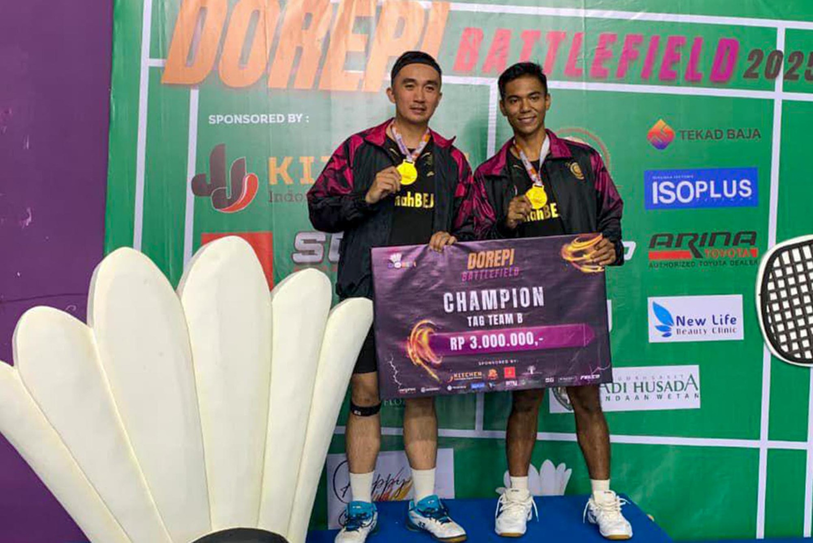 Dispen Kormar, TNI AL (Surabaya) PW : Prajurit Batalyon Infanteri 3 Marinir (Hiu Petarung) berhasil mengharumkan namanya dengan menjuarai pertandingan Dorepi Battlefield Badminton Tournament Tahun 2025 sejak tanggal 23 Sampai dengan 26 Agustus 2025 di Marvel Badminton Court, Jl. Ngagel No.123, Ngagel, Kec. Wonokromo, Surabaya, Jawa Timur. Rabu (27/08/2025).