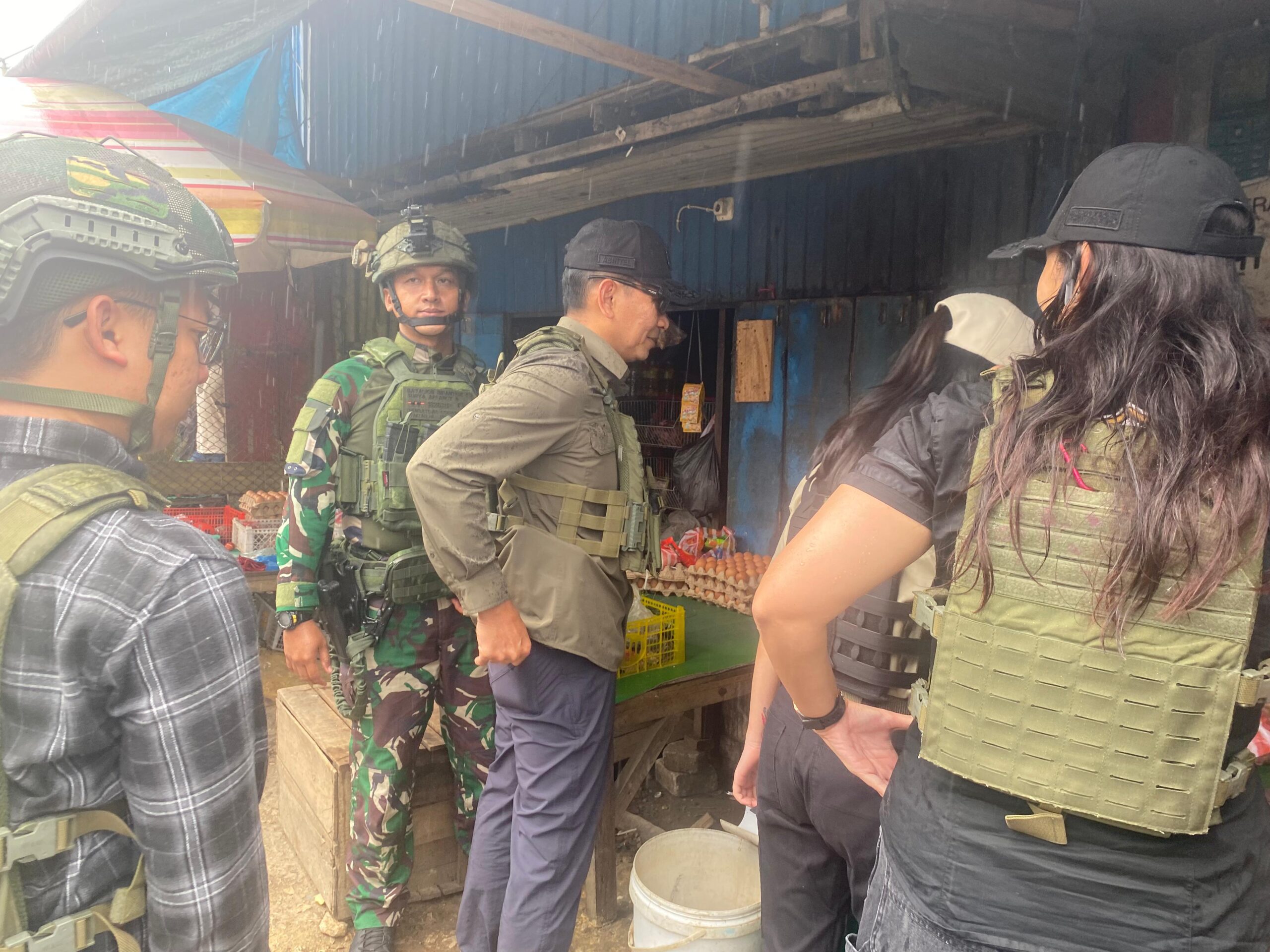 Kehangatan datang dari senyuman dan hati para prajurit Satgas Yonif 4 Marinir yang menyatu dengan masyarakat yang berdagang di pasar central Distrik Enarotali.