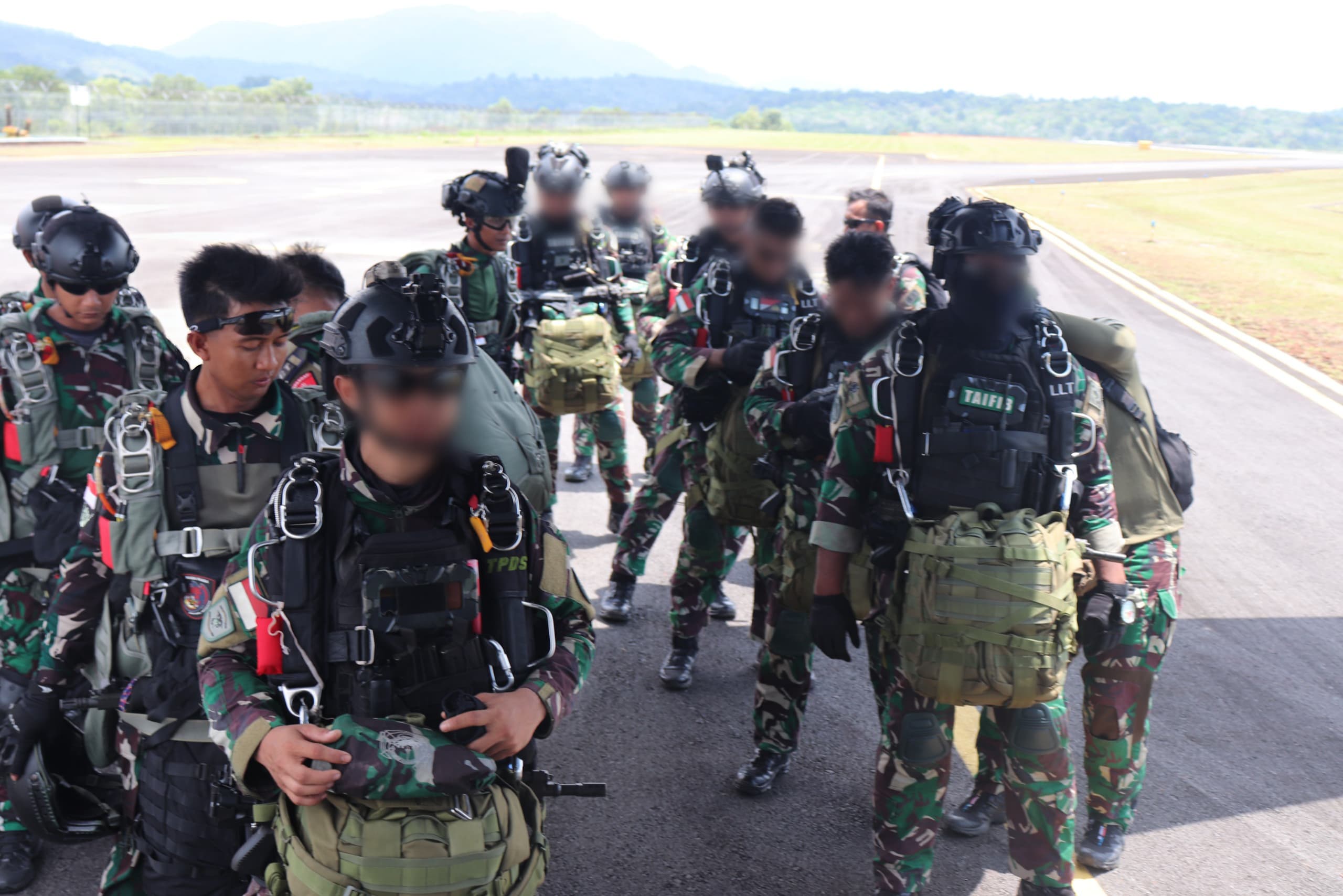 Latihan ini menjadi bagian dari rangkaian latihan gabungan Super Garuda Shield bersama TNI Angkatan Udara Denmatra 2. Penerjunan dilakukan di Bandara Dabo Singkep menggunakan pesawat CN asal Prancis dengan zona pendaratan (Dropping Zone) di area bandara tersebut.