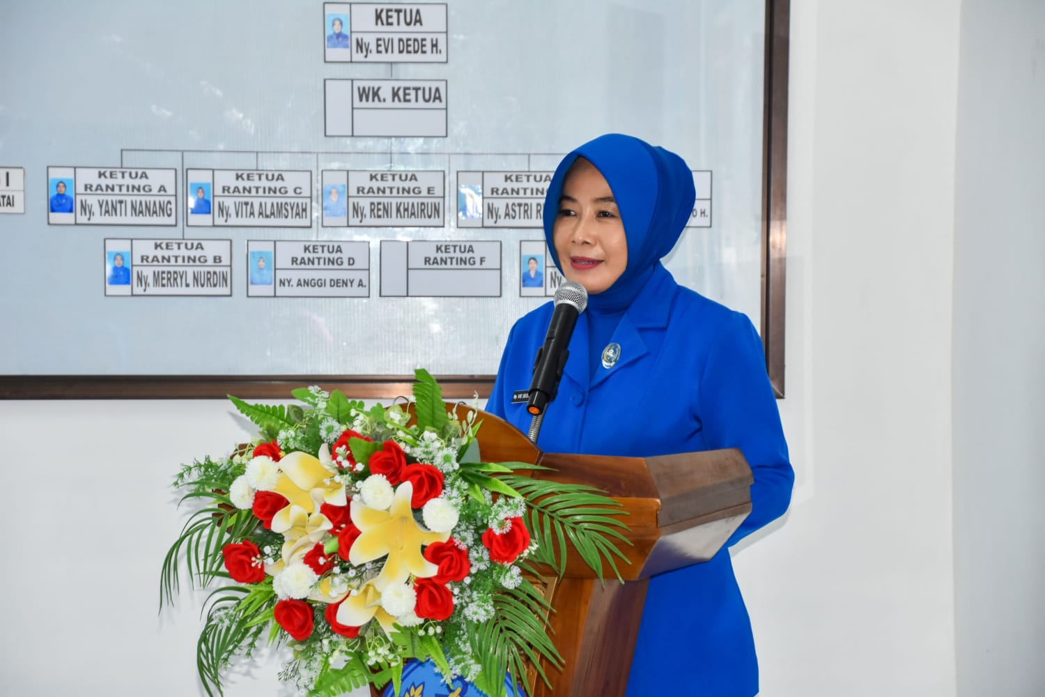 Dalam sambutannya, Ketua Cabang 5 Gabungan Jalasenastri Korps Marinir Ny. Evi Dede Harsana menyampaikan, selama masa kepemimpinannya, berbagai tugas pokok dan tujuan serta program-program organisasi Jalasenastri telah dilaksanakan secara optimal dan baik. Itu semua berkat dukungan dan bantuan para Pengurus dan Ketua Ranting sekalian.