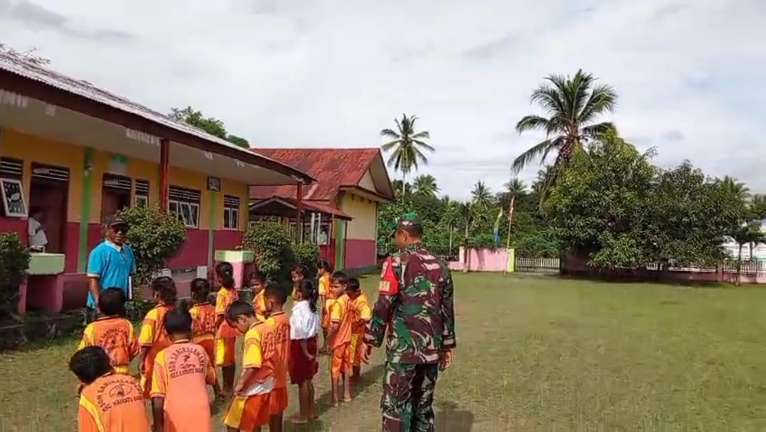 SBB PW Bertempat di SD Negeri Sarihalawane, Desa Waisarisa, Kecamatan Kairatu Barat, Kabupaten Seram Bagian Barat, Babinsa Waisarisa Koramil 1513-03/Kairatu, Serka M. Nasir Syam melaksanakan kegiatan perlawanan wilayah bersama guru olahraga setempat, Bapak Yosi Kopulalang, Jumat (05/09/2025).
