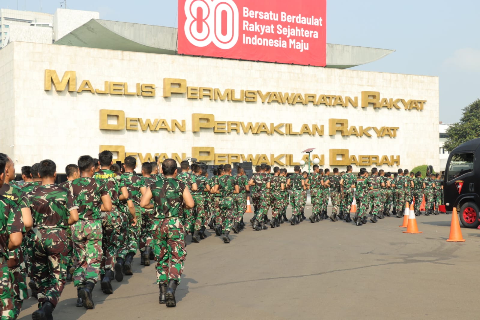 TNI AL, Pasmar 1. Dalam upaya memperkuat semangat kebersamaan dan meningkatkan kebugaran fisik, Komandan Batalyon Arhanud 1 Marinir (Danyon Arhanud 1 Mar( Letkol Marinir Verdian, S.Hub.Int., M.Tr.Opsla., selaku Komandan Satuan Setingkat Batalyon 2 (Dan SSY2) bersama Prajurit Pam Unras MPR DPR RI melaksanakan Apel pagi dan dilanjut dengan kegiatan lari pagi di Gedung DPR/MPR RU, Senayan, Jakarta Pusat, Jumat (05/09/2025).