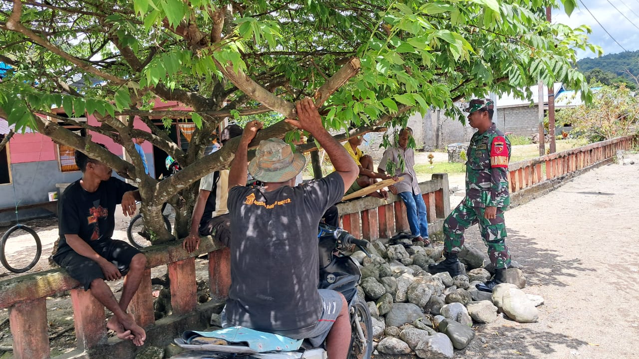 SBB PW Babinsa Koramil 1513-02/Taniwel, Sertu Dedy Mansur, melaksanakan kegiatan komunikasi sosial (komsos) bersama masyarakat Desa Patahuwe, Kecamatan Taniwel, Kabupaten Seram Bagian Barat (SBB), Sabtu (06/09/2025).