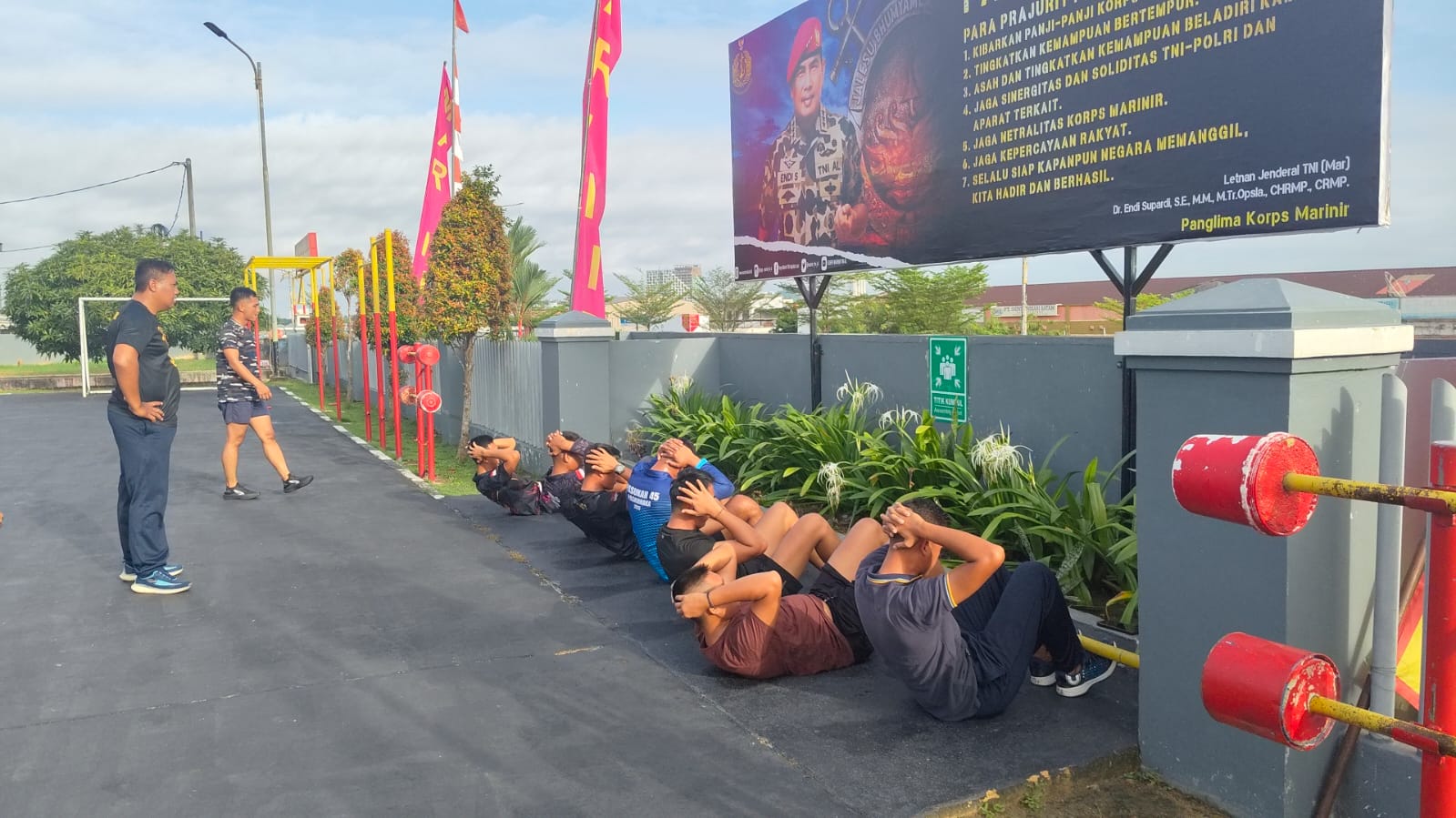 TNI AL , Pasmar 1. Prajurit Tidur Dalam Batalyon Marinir Pertahanan Pangkalan (Yonmarhanlan) IV Batam memanfaatkan waktu libur dengan melaksanakan kegiatan olahraga bersama di lingkungan Yonmarhanlan IV Batam. Minggu (14/09/2025).