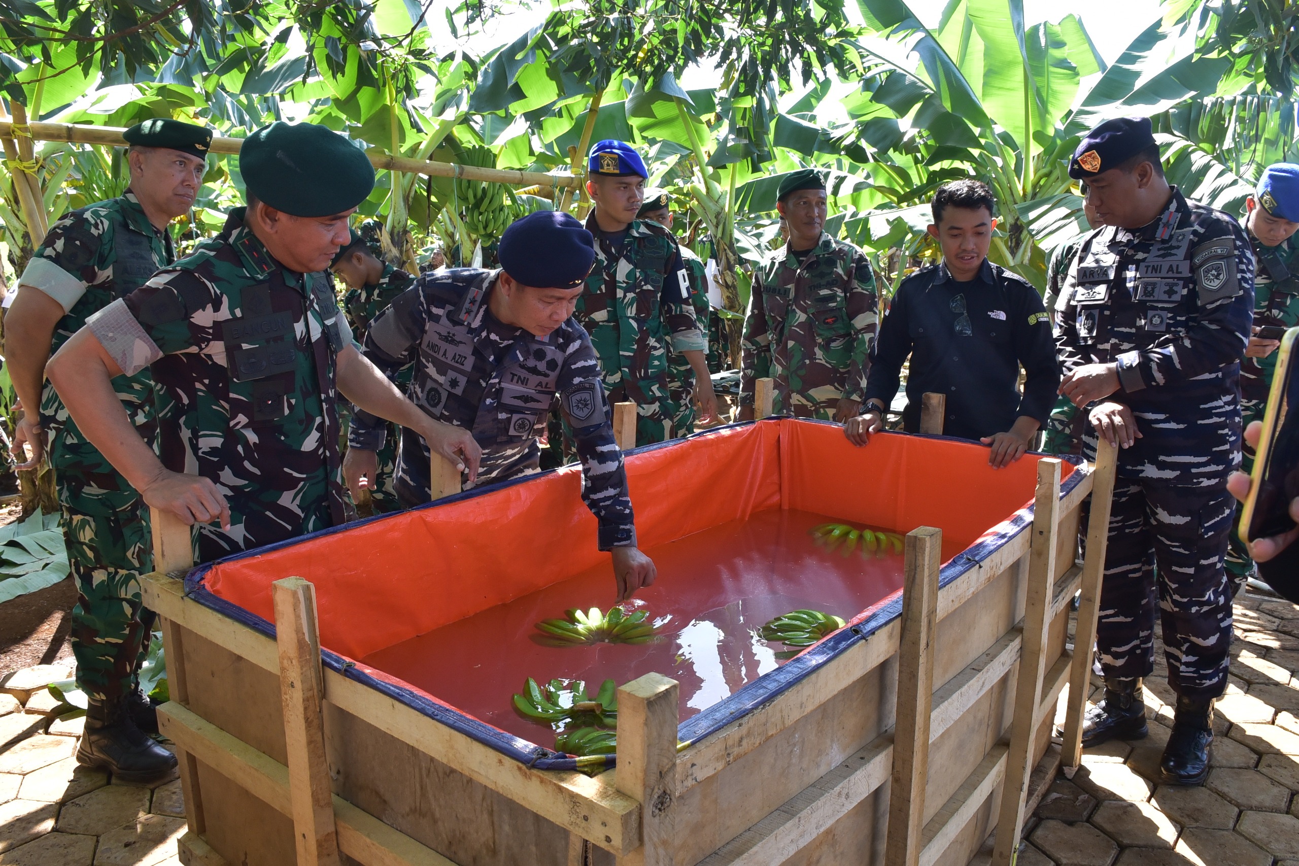 Dengan senyum semringah, Pangdivif 3 Kostrad dan Komandan Kodaeral VI, didampingi para tamu undangan kehormatan, secara simbolis memanen buah pisang Cavendish berkualitas tinggi.