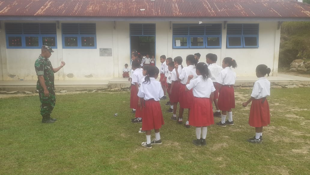 Kepala sekolah SD Kristen YPPK Desa Huku Kecil menyampaikan apresiasi dan rasa terima kasih kepada Babinsa yang telah meluangkan waktu membina para siswa.