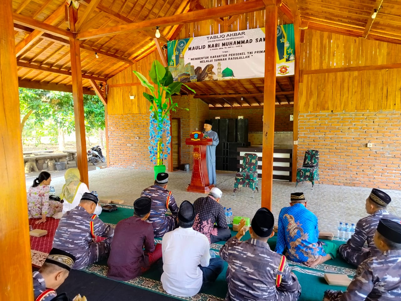 Dalam Tausiahnya K. Aziz Tarwani menyampaikan bahwa peringatan Maulid Nabi bukan sekedar seremoni semata, melainkan momentum untuk meneladani akhlak dan keimanan Rasulullah SAW, dan juga menekankan pentingnya ketangguhan iman bagi seorang prajurit dalam mengawal Bangsa dan Negara sesuai dengan tema peringatan kali ini “Membentuk Karakter Personil TNI Prima Melalui Sunnah Rosulullah”.