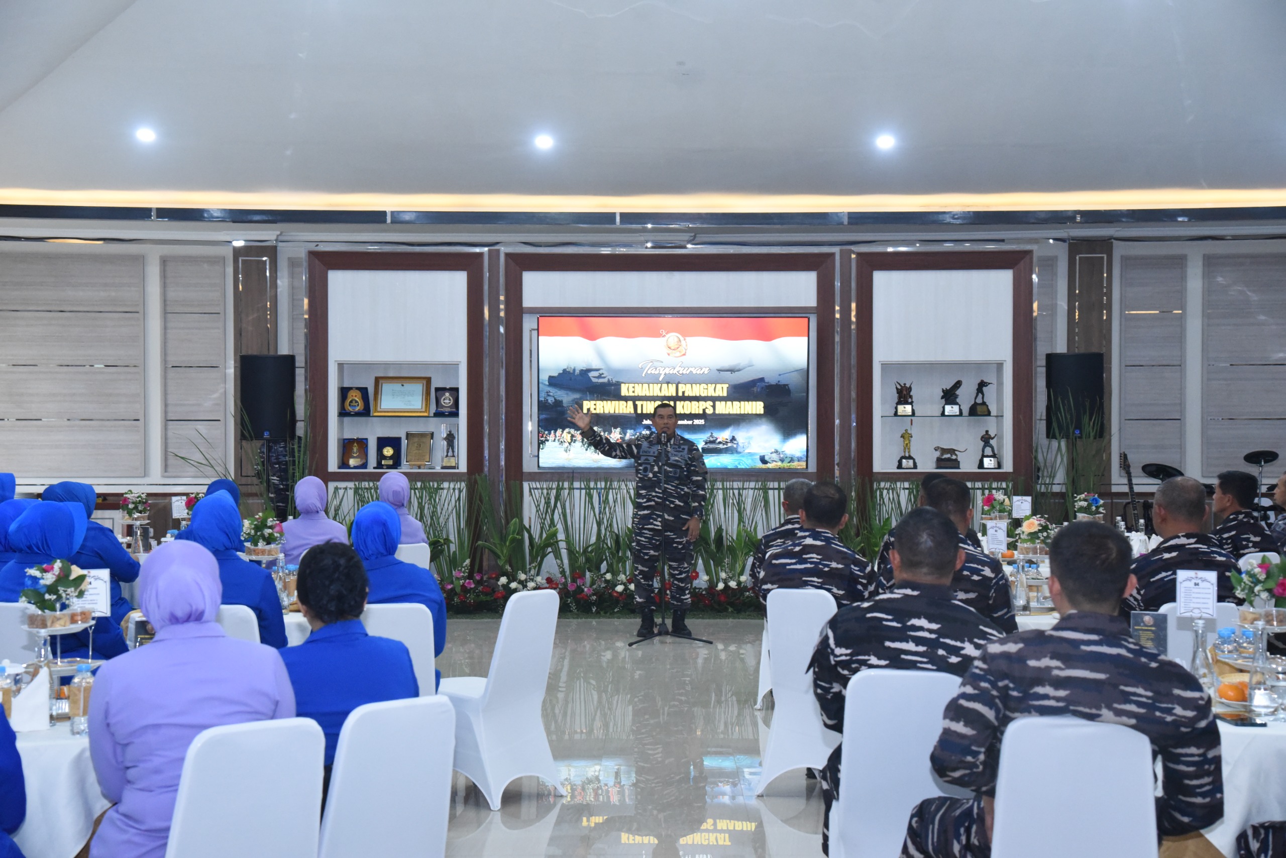 “Saya selaku panglima Korps Marinir atas nama pribadi dan seluruh jajaran Korps Marinir menyampaikan ucapan selamat atas kenaikan pangkat satu tingkat lebih tinggi. Tidak lupa juga saya ucapkan terimakasih dan apresiasi yang luar biasa kepada para ibu jalasenastri yang ikut berperan dalam mendampingi suami hingga jenjang pangkat sekarang ini,” pungkas Pangkormar.
