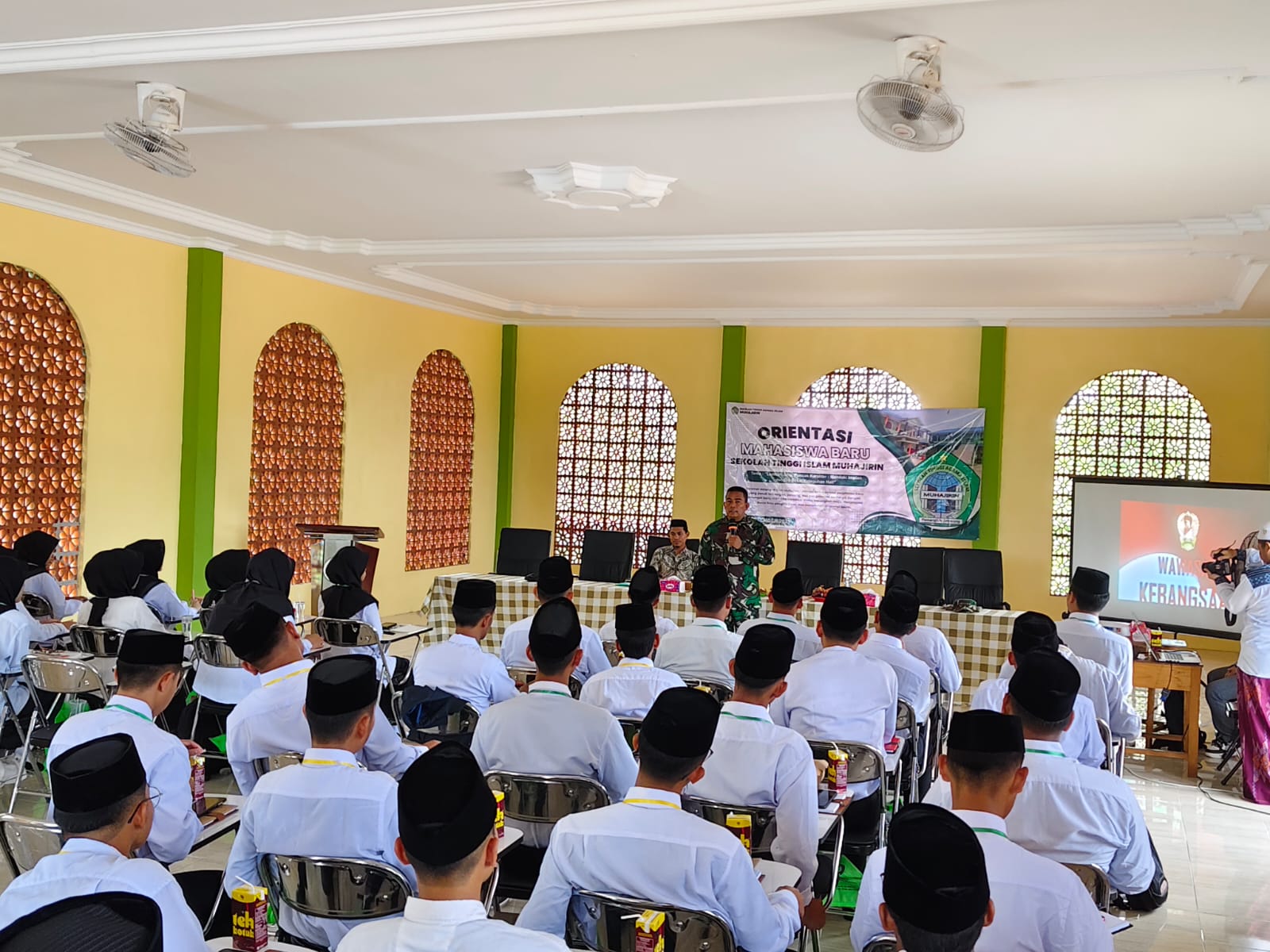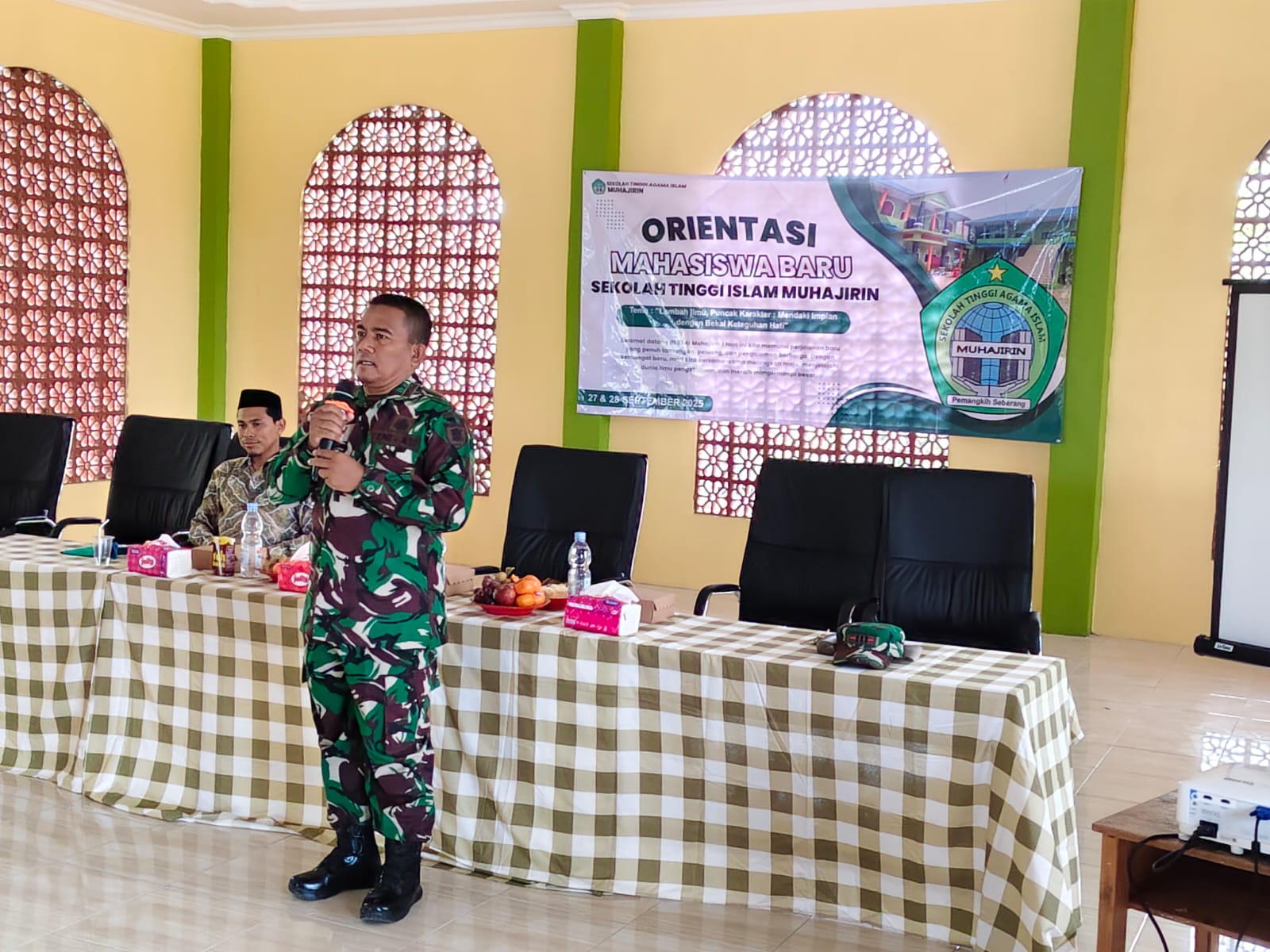 Hulu Sungai Tengah –PW: Danramil 1002-08/Labuan Amas Utara (LAU) Kapten Inf Rudi Hartono memberikan materi Wawasan Kebangsaan kepada para mahasiswa Sekolah Tinggi Agama Islam (STAI) Muhajirin di Desa Pemangkih Seberang, Kecamatan Labuan Amas Utara, Sabtu (27/9/2025).