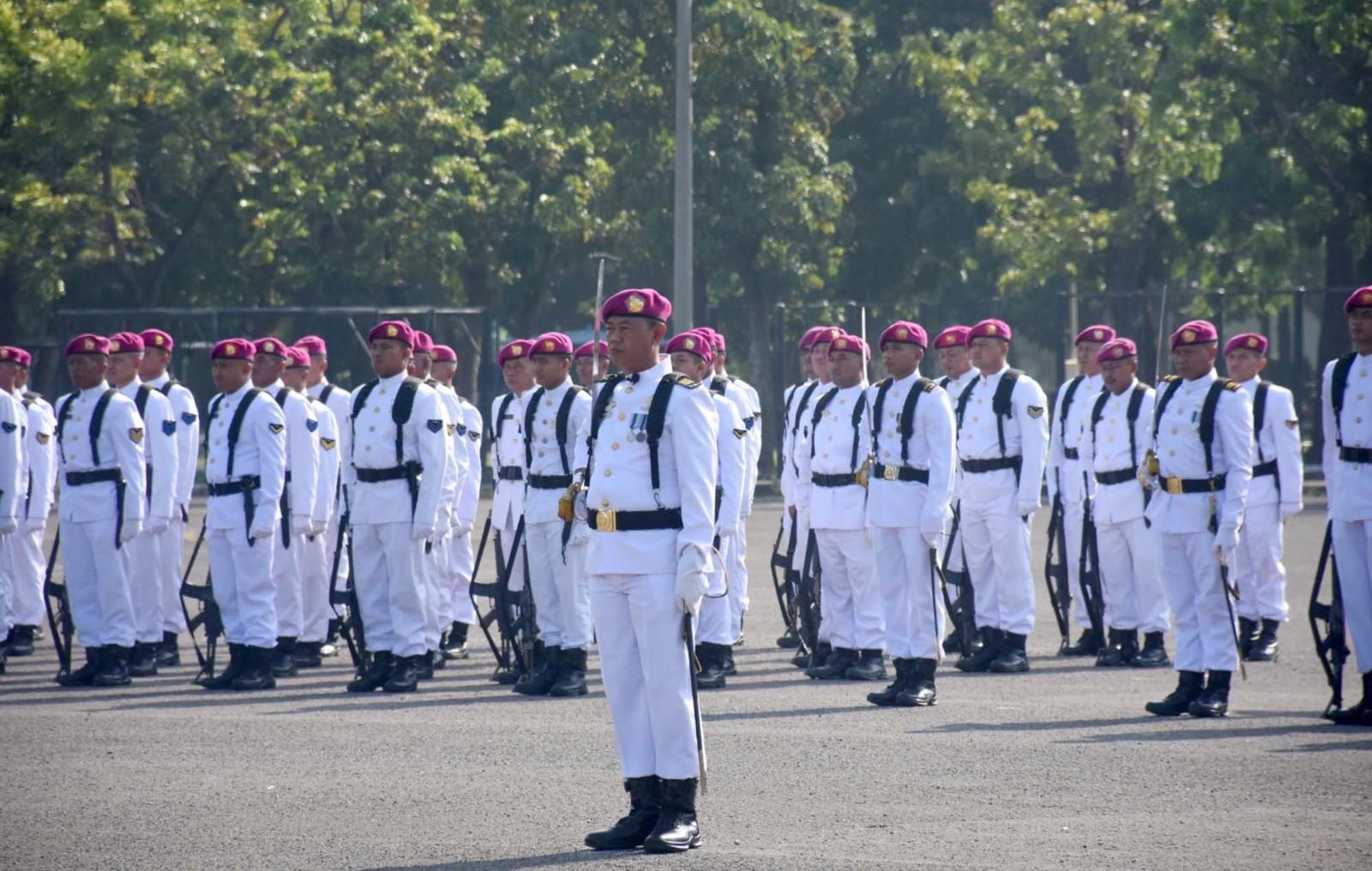 TNI AL, Dispen Kormar (Sidoarjo) PW : Prajurit Batalyon Infanteri 5 Marinir melaksanakan upacara peringatan Hari Kesaktian Pancasila tahun 2025 dengan tema “Pancasila Perekat Bangsa Menuju Indonesia Raya“ di lapangan apel Kesatrian Marinir R. Suhadi Gedangan, Sidoarjo, Jawa Timur. Rabu (01/10/2025).