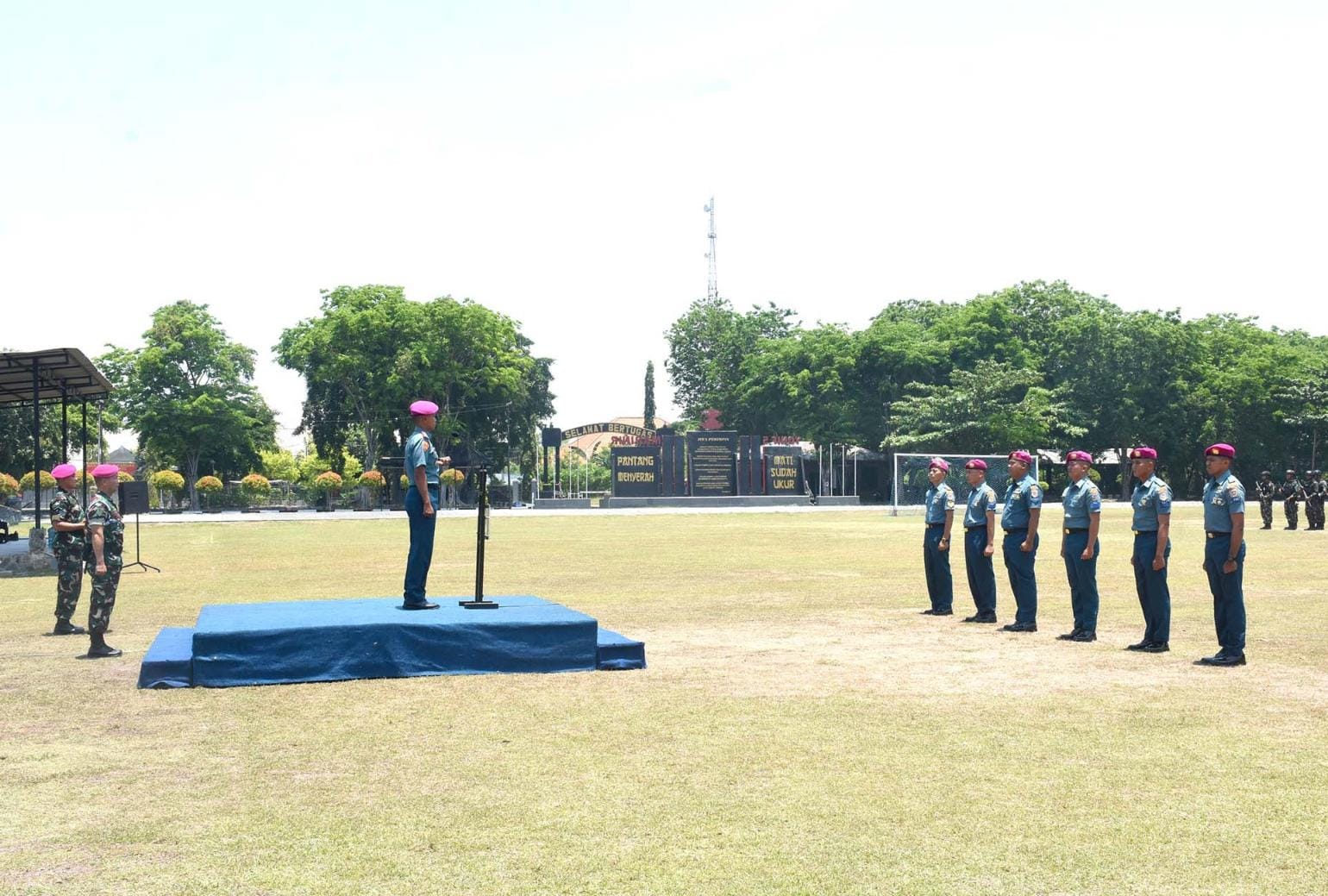 Pada kegiatan upacara tersebut Letkol Marinir Teguh Pristiyanto Dwi S., S.E., M. Tr. Opsla menerima laporan kenaikan pangkat Perwira, Bintara dan Tamtama Yonif 5 Marinir sebanyak 54 prajurit.