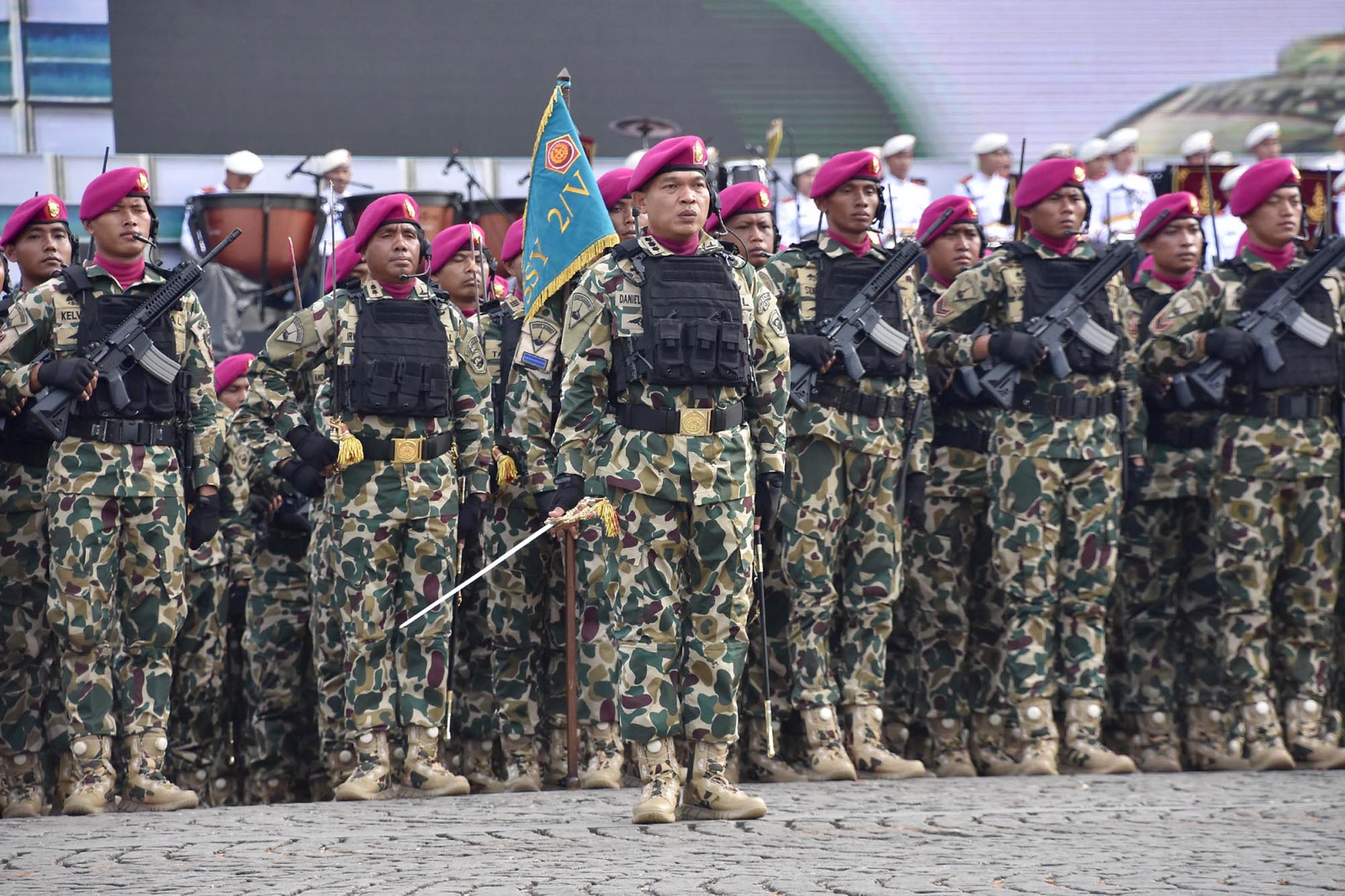 TNI AL, Dispen Kormar (Jakarta) PW : Dengan jiwa petarung Korps Marinir, prajurit Brigade Infanteri 2 Marinir memberikan yang terbaik pada latihan gladi bersih Upacara Peringatan Hari Ulang Tahun (HUT) ke 80 Tentara Nasional Indonesia (TNI) tahun 2025 di Lapangan Monumen Nasional (Monas), Jakarta Pusat. Jumat (03/10/2025). Gladi bersih upacara peringatan HUT ke 80 TNI tahun 2025 yang dipimpin secara langsung oleh Panglima TNI Jenderal TNI Agus Subiyanto tersebut dibawah kepemimpinan Komandan Brigif 2 Marinir Kolonel Marinir Daniel Tarigan, prajurit Brigif 2 Marinir yang tergabung dalam Brigade V Upacara menunjukan…