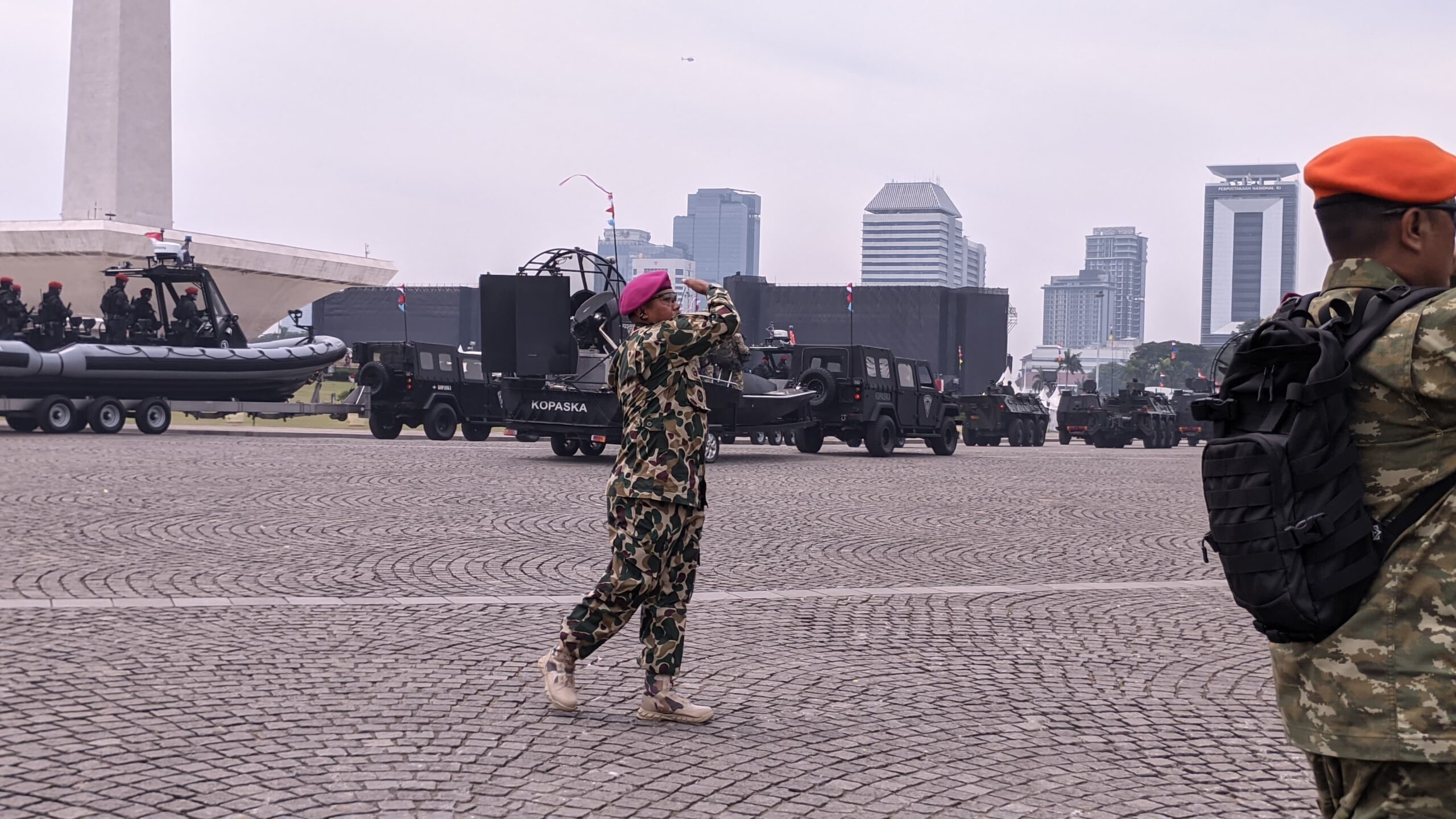 TNI AL, Pasmar 1. Komandan Batalyon Kapa 1 Marinir (Danyon Kapa 1 Mar) Letkol Marinir Bayhaky C. Chipta, M.Tr.Opsla., ditunjuk sebagai Perwira Pembina Material (Pabinmat) Ranpur dalam rangkaian kegiatan Hari Ulang Tahun (HUT) TNI ke-80 di Silang Monas, Jakarta Pusat, Jum’at (03/10/2025).