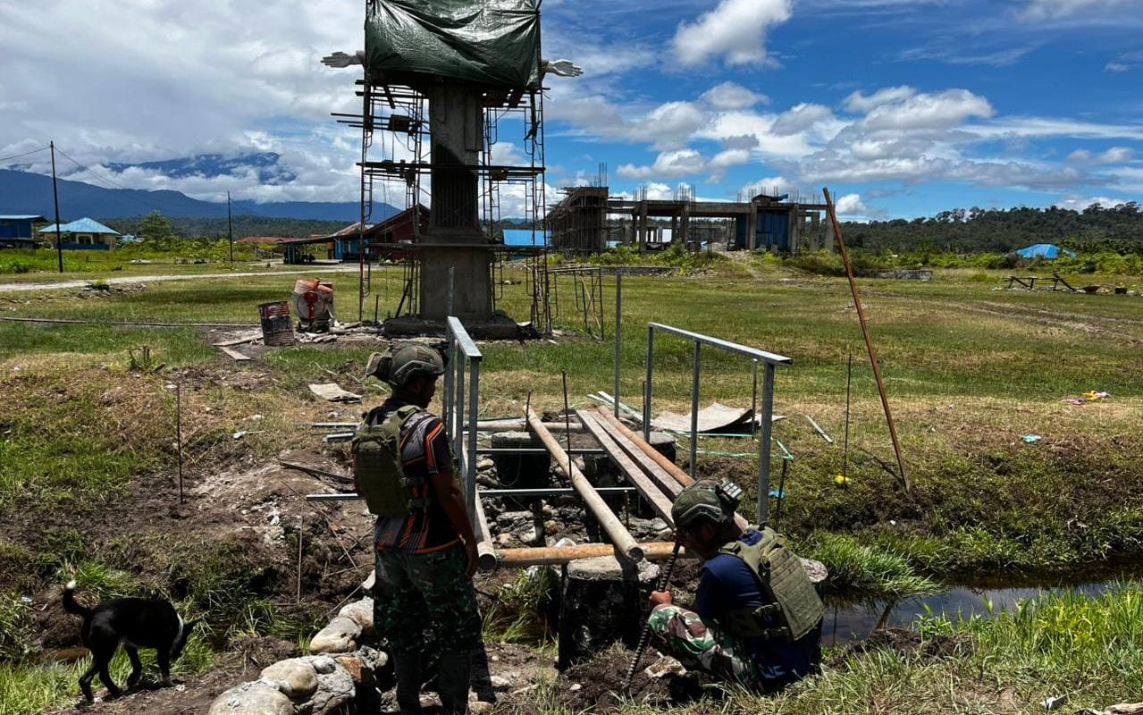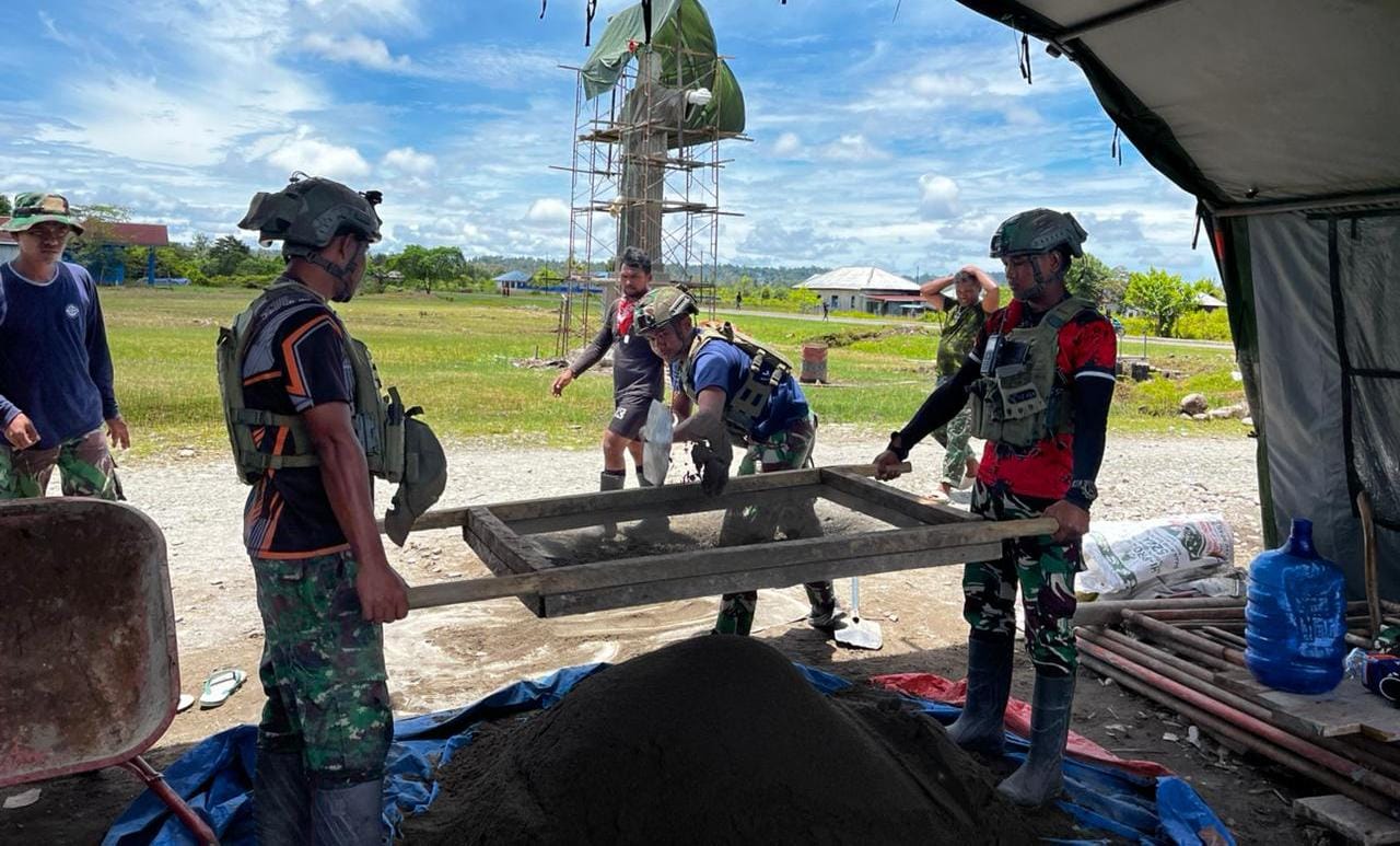 Satgas Yonif 733/Masariku bersama masyarakat hari ini melanjutkan karya bakti pembangunan infrastruktur penunjang akses menuju Patung Yesus di depan Gereja Betel Nduga.