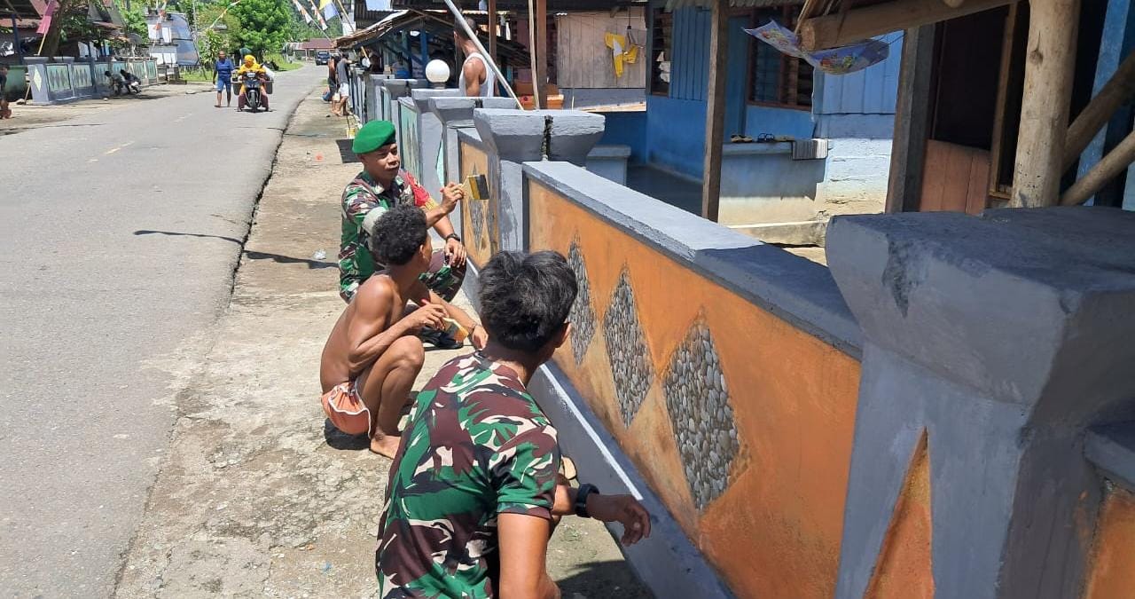 Dalam kegiatan tersebut, Babinsa turut berbaur dengan masyarakat, bahu-membahu mengecat pagar agar tampak lebih rapi dan indah.