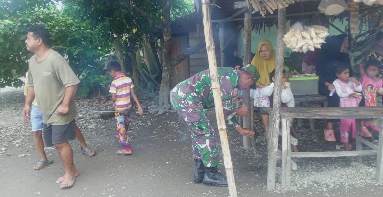 Babinsa Kairatu Ajak Warga Dusun Talaga Ratu Gotong Royong Buat Pagar Pekarangan Rumah