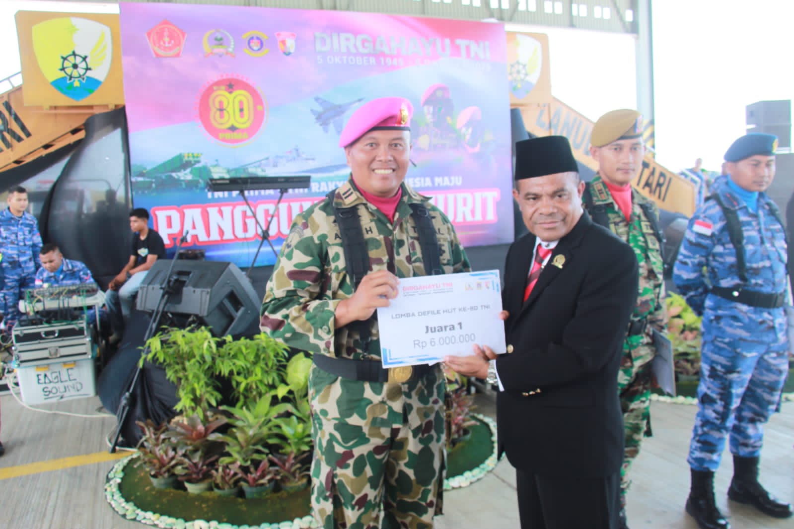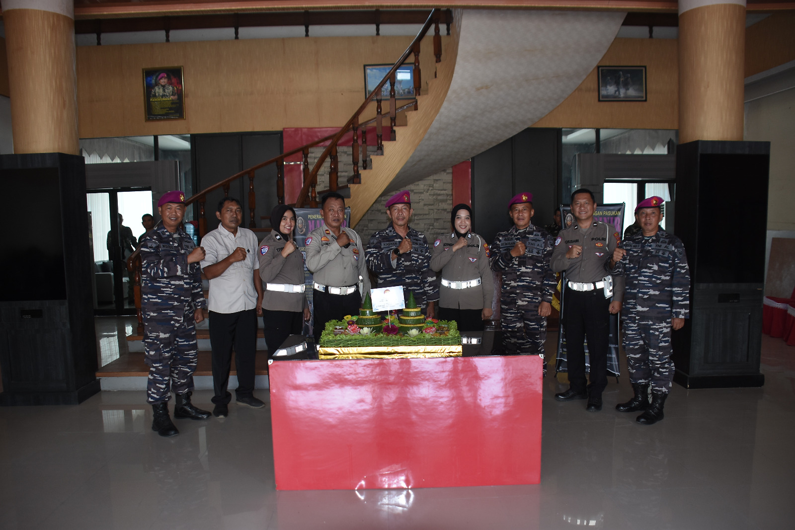 TNI AL, Dispen Kormar (Sidoarjo) PW : Brigade Infanteri 2 Marinir menerima kejutan dari Polresta Sidoarjo di Hari Ulang Tahun (HUT) ke 80 Tentara Nasional Indonesia (TNI) tahun 2025 di Lobby Mako Brigif 2 Marinir Gedangan, Sidoarjo, Jawa Timur. Senin (06/10/2025).
