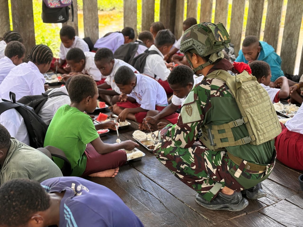 PAPUA, PW 6 Oktober 2025 – Satuan Tugas Pengamanan Perbatasan (Satgas Pamtas) RI-PNG Mobile Yonif 733/Masariku pergencar program unggulan “Masariku Peduli Gizi” di wilayah penugasan sebagai bukti nyata dalam mendukung program pemerintah. Program ini berfokus pada peningkatan kualitas gizi anak-anak di daerah terpencil, dengan lokasi pertama di SD Rimba YPPK Yan Smith Mumugu 2, Distrik Sawa Erma, Papua.
