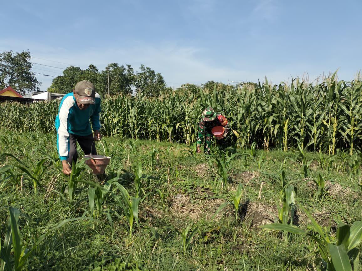 Selain membantu pekerjaan di lapangan, Babinsa juga memberikan masukan terkait cara pemupukan dan perawatan agar tanaman dapat tumbuh dengan baik.