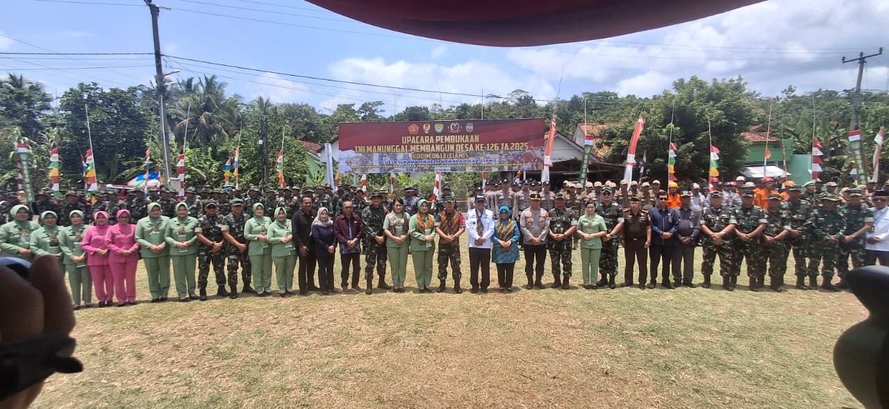 Ciamis, Jabar – PW.Program TNI Manunggal Membangun Desa (TMMD) ke-126 Tahun 2025 resmi dimulai di Desa Sukamulya, Kecamatan Purwadadi, Kabupaten Ciamis. Upacara pembukaan digelar pada Rabu (8/10/2025) di Lapangan Desa Sukamulya dan dipimpin langsung oleh Bupati Ciamis, Herdiat Sunarya. Kegiatan ini menjadi simbol nyata kolaborasi lintas sektoral antara TNI dan Pemerintah Daerah dalam mempercepat pembangunan di wilayah pedesaan. Dalam pembukaan tersebut, hadir sejumlah tokoh penting seperti Danrem 062/Tarumanagara Kolonel Inf Dadi Sutandi, S.E., M.M., Dandim 0613/Ciamis Letkol Inf Afiid Cahyono, Wakapolres Ciamis, jajaran Forkopimda Ciamis, serta para Kepala OPD…