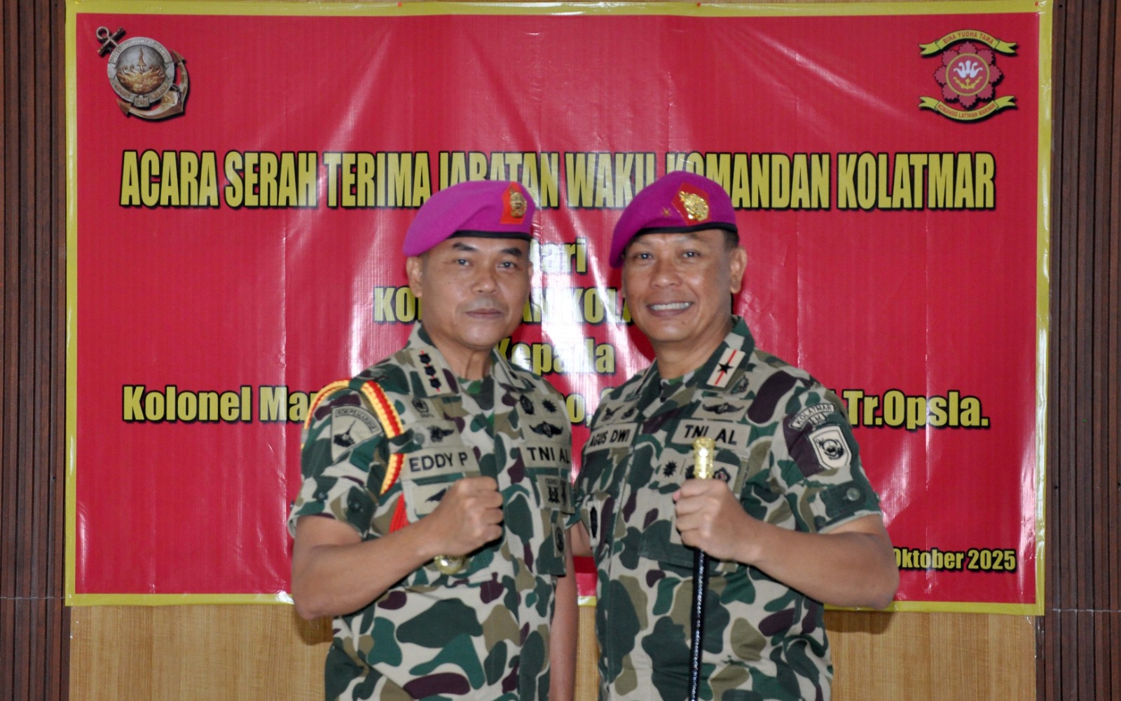 Dispen Kormar TNI AL (Surabaya) PW : Komandan Pasmar 2 Mayjen TNI (Mar) Dr. Oni Junianto menerima laporan kenaikan pangkat Perwira Menengah (Pamen) Pasmar 2 di Graha Gafur Chalik, Kesatrian Marinir Moekijat, Gedangan, Sidoarjo. Rabu (08/10/2025).