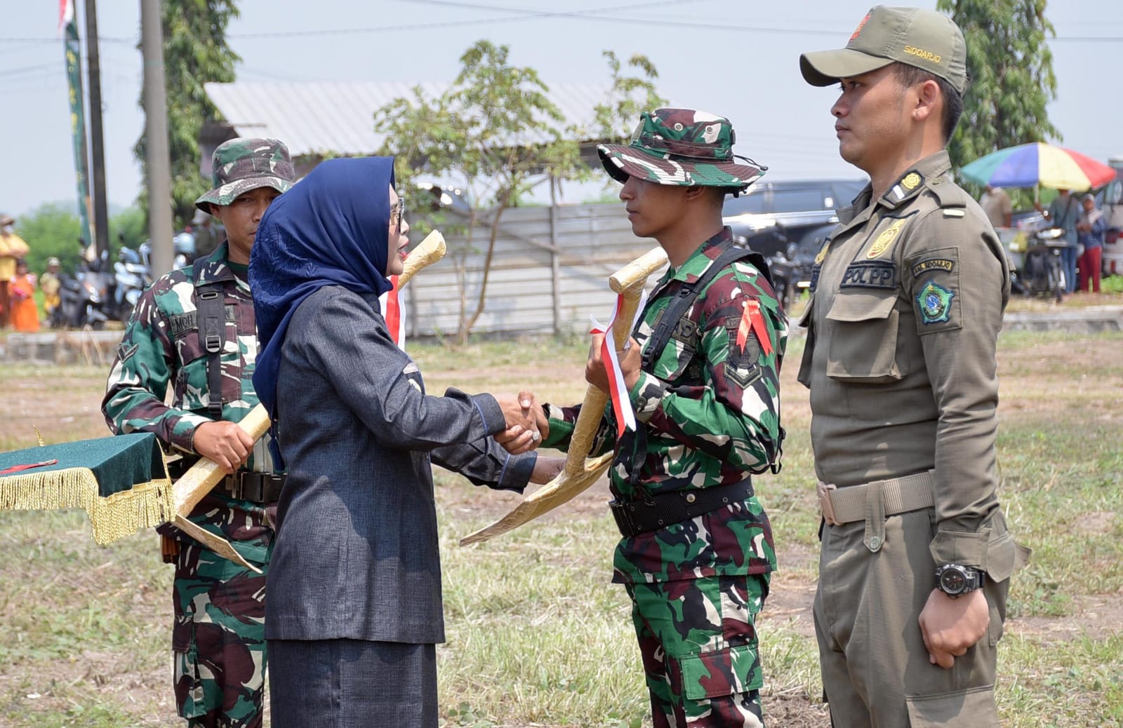 Dengan mengusung tema “Dengan Semangat TMMD Mewujudkan Pemerataan Pembangunan dan Ketahanan Nasional di Wilayah” upacara dipimpin oleh Wakil Bupati Sidoarjo Hj. Mimik Idayana selaku Inspektur, dengan penanggung jawab kegiatan Dandim 0816/Sidoarjo Letkol Czi Shobirin Setio Utomo, S.H., M.Han., dihadiri Danrem 084/Bhaskara Jaya Brigjen TNI Danny Alkadrie.