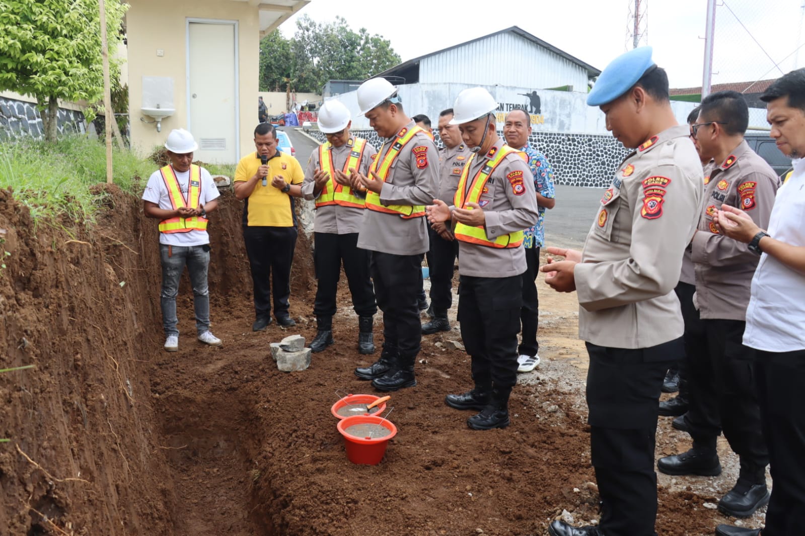 Peletakan batu pertama pembangunan ini dilaksanakan langsung oleh Kapolres Ciamis Polda Jabar AKBP H. Hidayatullah, SH., S.I.K., dan didampingi oleh Wakapolres Ciamis Polda Jabar Kompol Sujana, S.Pd., serta Pejabat Utama Polres Ciamis Polda Jabar. Dimana ini turut disaksikan oleh sejumlah personel dan ASN Polri Polres Ciamis Polda Jabar.