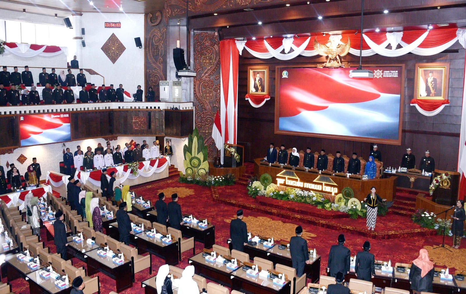 Rapat Paripurna dipimpin Wakil Ketua DPRD Provinsi Jawa Timur Bpk. Dedi Wicaksono, S.Sos., menghadirkan Prof. Dr. M. Mahfud MD, S.H., S.U., M.I.P,. sebagai narasumber utama memberikan Cermah Ilmiah tentang semangat kebangsaan dan peran strategis masyarakat Jawa Timur yang sangat menentukan bagi Kemerdekaan Indonesia pada 10 November 1945. Saat terjadinya kevakuman Pemerintahan Indonesia, karena aksi penahaanan oleh penjajah, masyarakat Jawa Timur terus melakukan perlawanan.